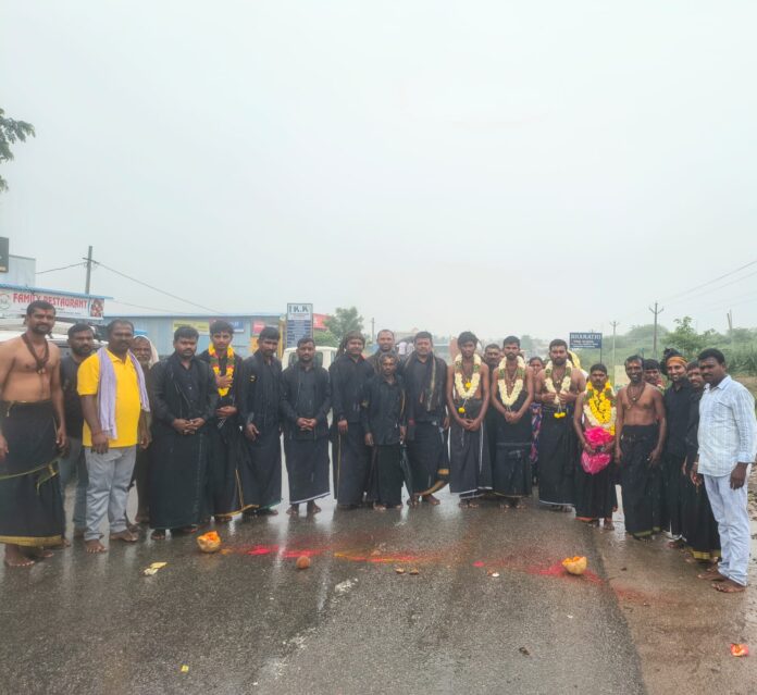 నేటి సాక్షి నారాయణపేట అక్టోబర్ 29,మరికల్ గురుస్వాముల ఆశీస్సులతో మరికల్ కుసురు రవి పాదయాత్ర గురుస్వామి ఆధ్వర్యంలో నారాయణపేట జిల్లాలోని మరికల్ మండల కేంద్రం నుండి శబరిమల మహాపాదయాత్ర 8 మంది స్వాములు 1160 కిలోమీటర్లు కాలినడకన బుధవారం రోజు శబరిమల వెళ్లడం జరిగింది. ఈ పాదయాత్ర కార్యక్రమంలో మరికల్ గ్రామానికి చెందిన అయ్యప్ప స్వాములు తదితరులు హాజరయ్యారు.