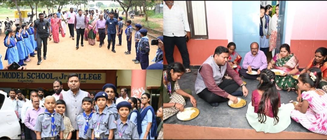 నేటి సాక్షి పత్రిక పాత్రికేయులు శర్మ, అన్నమయ్య జిల్లా, డిసెంబర్ 05 ~అన్నమయ్య జిల్లా :-: జిల్లా కలెక్టర్ నిశాంత్ కుమార్ సిబ్యాల లోని ప్రభుత్వ ఏపీ మోడల్ స్కూల్ అండ్ జూనియర్ కళాశాలను శుక్రవారం ఆకస్మికంగా సందర్శించి పాఠశాల లో జరుగుతున్న తల్లిదండ్రుల ఉపాధ్యాయుల ఆత్మీయ సమ్మేళన సమావేశ మెగా పీటీఎం కార్యక్రమంలో పాల్గొన్నారు. పాఠశాలలో నిర్వహిస్తున్న పేరెంట్ – టీచర్ సమావేశం (పీటీఎం) కార్యక్రమంలో పాల్గొని, విద్యార్థుల విద్యా పురోగతి, హాజరు, అభివృద్ధి, ప్రవర్తన తదితర అంశాలపై తల్లిదండ్రుల అభిప్రాయాలను విచారించి తెలుసుకున్నారు. ఉపాధ్యాయుల బోధన విధానం, బోధన ప్రభావం, పరీక్షా ఫలితాలపై సమగ్ర సమాచారాన్ని అడిగి తెలుసుకున్నారు. ప్రభుత్వం తీసుకుంటున్న విద్యా పరిరక్షణ చర్యలు విద్యార్థులకి సక్రమంగా చేరేలా చూడటం ఉపాధ్యాయుల బాధ్యత అని కలెక్టర్ నిశాంత్ కుమార్ పేర్కొన్నారు. ప్రతి విద్యార్థి ప్రభుత్వ పాఠశాలలో నాణ్యమైన విద్య పొందేలా అన్ని విభాగాలు సమన్వయంతో కలిసి పనిచేయాలన్నారు. పాఠశాల శుభ్రత, మౌలిక వసతుల మెరుగుదలకు ప్రాధాన్యమివ్వాలని సంబంధిత అధికారులను ఆదేశించారు.విద్యార్థులు భారత నిర్మాణంలో కీలక పాత్ర పోషిస్తారని, అందుకే విద్యా హక్కు మాత్రమే కాకుండా, సమగ్రాభివృద్ధి హక్కు కూడా వారికి ఉంటుందని కలెక్టర్ తెలిపారు. విద్యార్థుల మానసిక, శారీరక వికాసం కోసం క్రీడలు, సాంస్కృతిక కార్యక్రమాలు ప్రతి వారం ఏర్పాటు చేసి కార్యక్రమాలను నిర్వహించాలని ప్రధానోపాధ్యాయులకు సూచించారు. అనంతరం జిల్లా కలెక్టర్ నిశాంత్ కుమార్ విద్యార్థులు, తల్లిదండ్రులు, ఉపాధ్యాయులతో కలిసి సాంప్రదాయ బద్ధంగా భోజనం చేశారు. ఈ సందర్భంగా విద్యార్థులతో కలిసి భోజనం చేస్తున్న సమయంలో పిల్లలతో మాట్లాడుతూ ఉపాధ్యాయులు విద్యార్థుల పట్ల ప్రవర్తించే తీరు ఎలా ఉందని తరగతులు బాగా జరుగుతున్నాయా లేవా. ఉపాధ్యాయులు సమయానికి తరగతులకు హాజరవుతున్నారా లేదా. తరగతులు జరుగుతున్నప్పుడు మొబైల్ ఫోన్ వాడకం చేస్తున్నారా అంటూ పలు ప్రశ్నలను విద్యార్థినీల వద్ద ఆరా తీశారు. పాఠశాలలో క్రీడలు, కళలు, సృజనాత్మక కార్యక్రమాలు ఏ విధంగా నిర్వహించబడుతున్నాయని వివరాలు అడిగి తెలుసుకున్నారు. డొక్కా సీతమ్మ మధ్యాహ్న భోజన పథకంలో భోజనం యొక్క నాణ్యతను పరిశీలించి, విద్యార్థులు తీసుకునే ఆహారంపై వారి అభిప్రాయాలను స్వయంగా పిల్లలు మరియు తల్లిదండ్రులను అడిగి తెలుసుకున్నారు. మరింత రుచికరంగా విద్యార్థినీలకు అందించాలని ప్రధానోపాధ్యాయులకు సూచించారు. మన ఇళ్లల్లో బిడ్డలను ఎలా చూసుకుంటామో ఇక్కడ కూడా వాళ్ళు అదే విధంగా చూసుకోవాలని వాళ్లకు ఏ లోటు రాకుండా సంరక్షించాలని దూర ప్రాంతాల నుండి తల్లితండ్రు