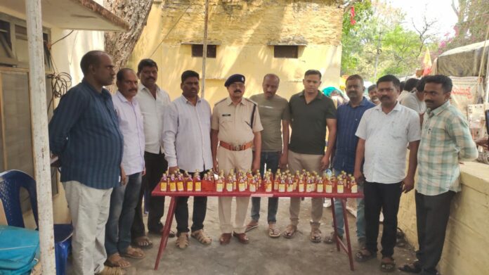 నేటి సాక్షి 18 మార్చి శ్రీశైలం: –శ్రీశైలంలో ఉగాది బ్రహ్మోత్సవాల సందర్భంగా నంద్యాల జిల్లా ప్రొహిబిషన్ మరియు ఎక్సైజ్ శాఖ, అసిస్టెంట్ ప్రొహిబిషన్ మరియు ఎక్సైజ్ సూపరింటెండెంట్ వి.రాముడు గారి ఆధ్వర్యంలో ఈరోజు శ్రీశైలం దేవస్థానం పరిసర ప్రాంతాలు అయిన కొత్తపేట, మేకలబండ, మాణిక్యమ్మసేల పరిసర ప్రాంతాలలో జరిపిన దాడులు వివరాలు.. ఈరోజు నిర్వహించిన తనిఖీలలో భాగంగా, అక్రమ మద్యం తయారీ మరియు రవాణాపై కఠిన చర్యలు చేపట్టడం జరిగింది. మొత్తం మూడు కేసులు నమోదు చేసి, ముగ్గురు వ్యక్తులను అరెస్ట్ చేయడం జరిగింది.ఈ సందర్భంగా, ఆంధ్ర, తెలంగాణ రాష్ట్రాలకు చెందిన (60) మద్యం బాటిళ్ళు స్వాధీనం చేసుకున్నారు. అక్రమ మద్యం తయారీ, రవాణా మరియు విక్రయాలపై ఎట్టి పరిస్థితుల్లోనూ సహించబోమని అధికారులు హెచ్చరించారు. ఇలాంటి చట్ట విరుద్ధ కార్యకలాపాలపై నిరంతర తనిఖీలు కొనసాగిస్తామని, ప్రజలు కూడా సమాచారం అందించి సహకరించాలని విజ్ఞప్తి చేశారు.ఈ దాడులలో ఆత్మకూరు ఎక్సైజ్ స్టేషన్ సిఐ మోహన్ రెడ్డి, ఆళ్లగడ్డ ఎక్సైజ్ విజయ్ కుమార్, నంద్యాల ESTF సిఐ లక్ష్మణదాస్, కోయిలకుంట్ల ఎస్.ఐ సందీప్, కర్నూలు ఎన్ఫోర్స్మెంట్ సీఐ కిషోర్ కుమార్ మరియు వారి సిబ్బంది, నందికొట్కూరు ఎక్సైజ్ సి.ఐ రామాంజనేయులు ఎస్ఐలు రమేష్, డోన్ ఎస్.ఐ సోమశేఖర్, కర్నూల్ ఎస్.ఐ మధుసూదన్ రెడ్డి వీరాస్వామి పాల్గొనడం జరిగింది.