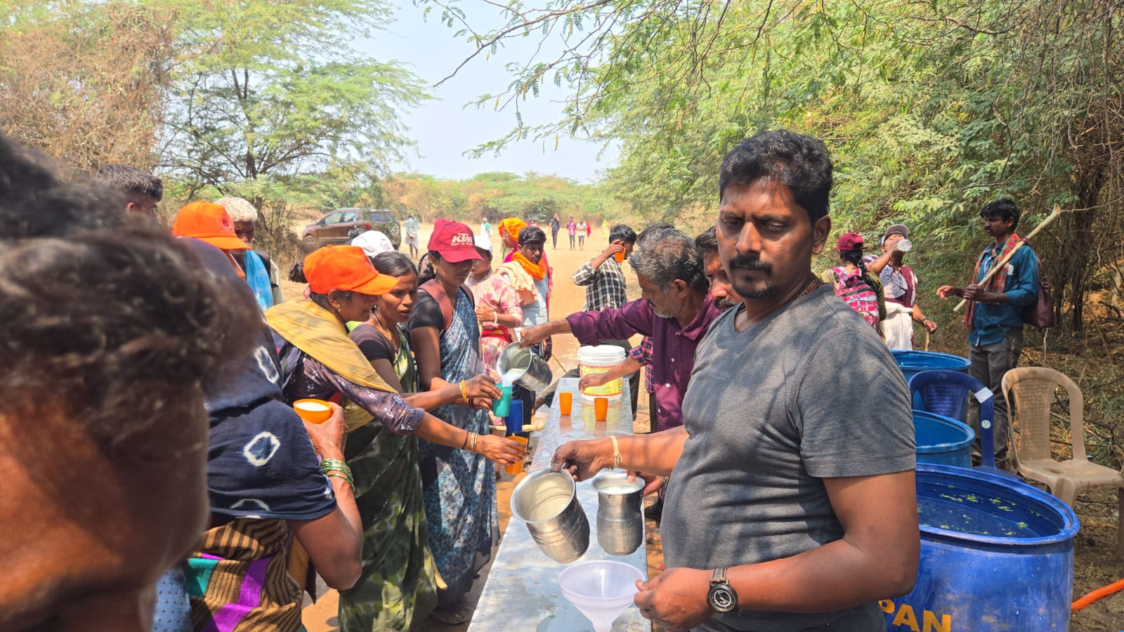 నేటి సాక్షి మార్చి 18 ఆత్మకూరు:–ఉగాది పర్వదినం సందర్భంగా శ్రీశైలం కు పాదయాత్రగా వెళ్తున్న కన్నడ భక్తులకు సేవాభావంతో ముందుకొచ్చిన దేవా ట్రస్ట్ (అనంతపురం) వారు గోసాయి కట్ట ఆంజనేయ స్వామి ఆలయం వద్ద ఆది, సోమవారాల్లో కేవలం రెండు రోజుల్లోనే సుమారు 27 వేల మంది భక్తులకు మజ్జిగ పంపిణీ చేశారు.ఈ సందర్భంగా ట్రస్ట్ సభ్యుడు దేవ నరేష్ మాట్లాడుతూ, దాతల సహకారంతో దేవా ట్రస్ట్ ఆధ్వర్యంలో తొలిసారిగా అటవీశాఖ అధికారుల అనుమతితో ఈ సేవ కార్యక్రమాన్ని నిర్వహించామని తెలిపారు. పాదయాత్ర ప్రారంభమైన తర్వాత వచ్చిన ఆలోచనతో, అవసరమైన అనుమతులు పొందుతూ తక్షణమే మజ్జిగ పంపిణీ చేపట్టినట్లు చెప్పారు.రాబోయే రోజుల్లో మరింత ప్రణాళికాబద్ధంగా పెద్ద ఎత్తున సేవా కార్యక్రమాలు నిర్వహించాలని, ముఖ్యంగా వచ్చే ఉగాది సందర్భంగా ఇంకా ఎక్కువ సంఖ్యలో భక్తులకు సేవలు అందించాలనే సంకల్పంతో ముందుకు సాగుతున్నామని వెల్లడించారు.వేసవి కాలంలో తక్కువ సమయంలోనే ఈ సేవ కార్యక్రమం నిర్వహించడానికి సహకరించిన అటవీశాఖ అధికారులకు కృతజ్ఞతలు తెలిపారు.ఈ కార్యక్రమంలో దేవర నరేష్, భరత్, నాగరాజు, ప్రభాకర్, నరసింహ, లక్మన్,చెంచు బయన్న, తదితరులు పాల్గొన్నారు.