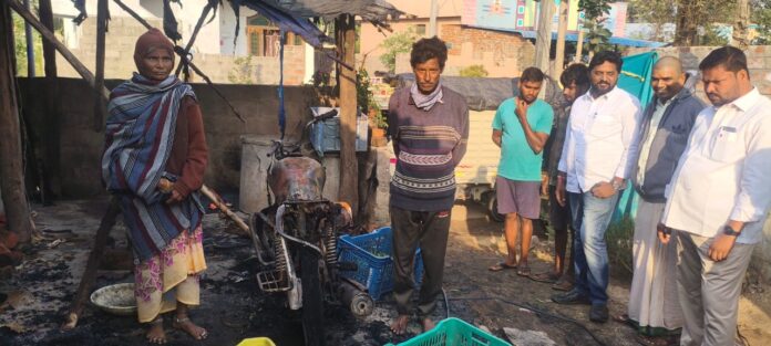 నేటి సాక్షి,నల్లబెల్లి ,డిసెంబర్ 27 : నందిగామ గ్రామానికి చెందిన బొగ్గుల చిన్న కార్తి ఇంటి వద్ద షార్ట్ సర్క్యూట్ కారణంగా బైక్‌తో పాటు ఇంట్లోని వస్తువులు దగ్ధమై సుమారు రూ.80,000 నష్టం వాటిల్లింది.విషయం తెలుసుకున్న గ్రామ సర్పంచ్ భూక్యా భాస్కర్, కాంగ్రెస్ పార్టీ అధ్యక్షుడు జంగిలి మోహన్ తదితరులు సంఘటనా స్థలానికి చేరుకుని బాధిత కుటుంబాన్ని పరామర్శించారు.అపదలో ఉన్న కుటుంబానికి అండగా నిలుస్తామని భరోసా ఇచ్చి, సహాయానికి ముందుకు రావాలని గ్రామస్తులను కోరారు.