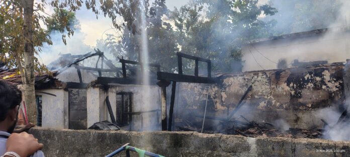 నేటి సాక్షి పాలేరు , నవంబర్ 21 :తాను ఒకటి తలిస్తే దైవం మరొకటి తలించిట్టు .. అసలుకే ఇల్లు లేదు .. తల దాచుకోవడానికి కిరాయి ఇంట్లో ఉంటున్నారు.. ఇటీవల కాంగ్రెస్ ప్రభుత్వం ఇందిరమ్మ ఇల్లు మంజూరు చేసింది.. సొంతింటి కల నెరవేర్చుకోవడానికి ఇల్లు నిర్మాణం కోసం డబ్బులు తెచ్చి ఇంట్లో పెట్టుకున్నాడు.. ఇల్లు నిర్మాణంలో ఉండగానే షార్ట్ సర్క్యూట్ వల్ల కిరాయికి ఉంటున్న ఇల్లు దగ్దం అయింది.. షార్ట్ సర్క్యూట్ ఆ కుటుంబానికి తీరని దుఃఖం మిగిల్చింది.. ఈ ఘటన మండలంలో జరిగింది.. స్థానికులు తెలిపిన వివరాలు ఇలా ఉన్నాయి.. కూసుమంచి మండలం గట్టుసింగారం గ్రామానికి చెందిన ఆడెపు వీరాస్వామి వ్యవసాయం కుటుంబం.. ఇల్లు లేని వీరాస్వామి స్థానికంగా ఉన్న మాజీ ఉద్యోగికి చెందిన పెంకుటిల్లులో కిరాయికి ఉంటున్నాడు.. ఇటీవల ఇందిరమ్మ ఇల్లు మంజూరు కావడంతో ఇల్లు నిర్మాణపు పనులు చేపట్టారు. ఈ క్రమంలో శుక్రవారం మధ్యాహ్నం ఇంట్లో ఎవరు లేని సమయంలో వీరాస్వామి కిరాయికి ఉంటున్న ఇంట్లో విద్యుత్ షార్ట్ సర్క్యూట్ తో ఒక్కసారిగా ఇంట్లో మంటలు ఎగసి పడి పూర్తిగా దగ్దం అయింది.. మంటలను గమనించిన వెంటనే స్థానికులు అగ్నిమాపక సిబ్బందికి సమాచారం ఇచ్చారు.. కూసుమంచి , నేలకొండపల్లి అగ్నిమాపక సిబ్బంది హుటాహుటిగా ఘటన స్థలానికి చేరుకొని మంటలను అదుపులోకి తెచ్చారు.. అప్పటికే ఇల్లు పూర్తిగా కాలిపోయింది.. ఇంట్లో దుస్తువులు ,బంగారం ,నగదు , వంట సామగ్రితో సహా సర్వం కాలి బూడిదైంది.. ఈ ప్రమాదంలో సుమారు 15 లక్షల రూపాయల ఆస్తి నష్టం జరిగినట్టు బాధితుడు వీరాస్వామి ఆవేదన చెందారు.. ఇప్పుడు నిర్మాణంలో ఉన్న ఇందిరమ్మ ఇల్లు ఎలా పూర్తి చేయాలో తెలియక దుఃఖంలో మునిగారు.. ఉన్నట్లు ఉండి ఇప్పుడు ఆ కుటుంబం మొత్తం రోడ్ మీద పడ్డది. ఎలాగైనా తమ కుటుంబాన్ని ప్రభుత్వమే ఆదుకోవాలని కోరుతున్నాడు..