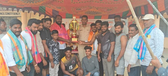 నేటి సాక్షి తొగుట.. వడ్డే నరసింహులుసంక్రాతి పండుగ సందర్బంగా తొగుట గ్రామంలో గ్రామ సర్పంచ్ పాగాల శోభ కొండల్ రెడ్డి ఆధ్వర్యంలో వాళిబాల్ టోర్నమెంట్ పెట్టడం జరిగింది. విజేతలకు బహుమతి కార్యక్రమం కు ముఖ్య అతిధిగా తొగుట CI లతీఫ్ విజేతలకు బహుమతలు ప్రధానం చేయడం జరిగినది ఇట్టి కార్యక్రమంలొ తొగుట సర్పంచ్ పాగాల శోభ కొండల్ రెడ్డి రాంపూర్ సర్పంచ్ లచ్చోళ్ల రవి ఉపసర్పంచ్లు బండారు తిరుపతి, నాగరాజుమరియు మ్యాకల రమేష్ తొగుట కాంగ్రెస్ పార్టీ అధ్యక్షులు భరత్ తేజ వార్డ్ మెంబెర్స్ దేవేందర్ అభి కొమ్మర పవన్ వినోద్ అనిల్ తొగుట యూత్ పాల్గొన్నారు