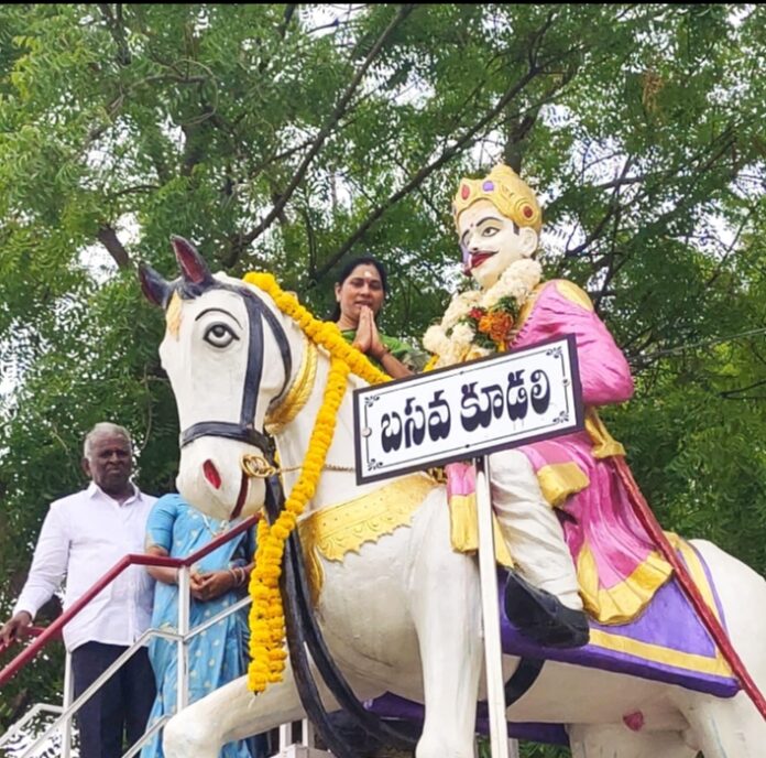 నేటి సాక్షి – జగిత్యాల టౌన్ (పూరెళ్ల బాపు )……………………………………..మహాత్మా బసవేశ్వర గారి 893వ జయంతి సందర్భంగా ధరూర్ క్యాంప్ చౌరస్తా వద్ద గల ఆయన విగ్రహానికి చైర్పర్సన్ సమీండ్ల వాణి శ్రీనివాస్ పుష్పాంజలి ఘటించారు. మున్సిపల్ ఆధ్వర్యంలో జయంతి వేడుకలు ఘనంగా నిర్వహించారు.*ఈ సందర్భంగా ఆమె మాట్లాడుతూ*బసవేశ్వర గారు సమానత్వం, సామాజిక న్యాయం, శ్రమకు గౌరవం వంటి విలువలను సమాజానికి అందించిన మహానుభావుడని పేర్కొన్నారు. 12వ శతాబ్దంలోనే సమసమాజ స్థాపనకు కృషి చేసిన మహనీయుడిగా ఆయనను కొనియాడారు. అనుభవ మండపం ద్వారా ప్రజాస్వామ్యానికి పునాది వేసి, మహిళలకు సమాన హక్కులు కల్పించడంలో ఆయన చూపిన మార్గం నేటికీ ప్రేరణగా నిలుస్తుందని అన్నారు.బసవేశ్వర గారి ఆశయాలను కొనసాగిస్తూ సమానత్వ సమాజ నిర్మాణానికి కృషి చేయాలని చైర్పర్సన్ పిలుపునిచ్చారు.ఈ కార్యక్రమంలో డీసీసీ అధ్యక్షులు నందయ్య, కౌన్సిలర్లు జుంబర్తి గంగలక్ష్మి రాజ్కుమార్, మూలస్థం లావణ్య మహేష్, బైర్నీని భాగ్య, గోపి, సిరిపురం శ్రీలత శ్రీనివాస్, మున్సిపల్ కమిషనర్ స్పందన, నాయకులు గాజుల రాజేందర్, బండ శంకర్, వీరశైవ సమాజ అధ్యక్షులు కంది కైలాసం మరియు అడ్డగూరి నాగేంద్ర, సూరం వీరయ్య, అంగడిమతం చరణ్ అయ్యవారు, గుంటి నిరంజన్, తదితరులు, వీరశైవ సభ్యులు, ప్రజలు, అధికారులు పాల్గొన్నారు.