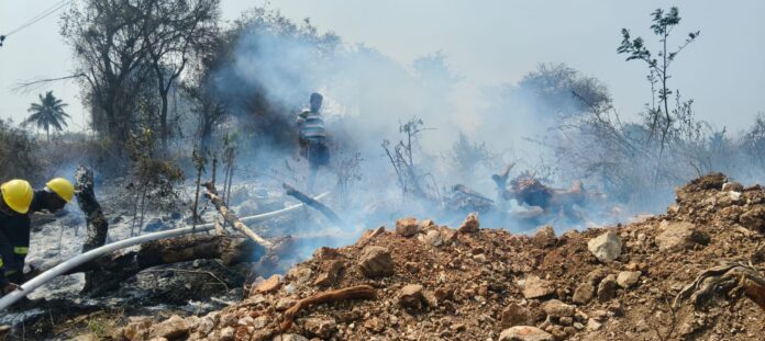 నేటి సాక్షి న్యూస్ చౌడేపల్లి మార్చి 2 చౌడేపల్లి మండలంలోని ఆమీని గుంట పంచాయతీ సంబంధించిన అగ్నిప్రమాదంలో రూ 20 వేలు ఆస్తి నష్టం జరిగిందని, పుంగనూరు అభిమాపక అధికారి సుబ్బరాజు తెలిపారు. ఆయన కథనం మేరకు… సింగగిరి గుట్టకు సమీపంలో ఎం ప్రకాష్ కు చెందిన టమోటా చెట్లపై నాటే కట్టెలు పొలం వద్ద ఉన్నాయి అందులో నుంచి మంటలు చెలరేకడంతో చుట్టుపక్కల వారు. ఆర్పే ప్రయత్నం చేశారు, సమాచారం అందుకున్న పుంగనూరు అగ్నిమాపక సిబ్బంది తరలివచ్చి మంటలను పూర్తిగా అదుపు చేశారు, ఈ మంటలలో కట్టెలు పూర్తిగా కాలి బూడిదయ్యాయి జుట్టు తిరిగిన వ్యక్తులు ధూమపానం సేవించి మండుతున్న ముక్కలు పడేయడం వల్లనే ఈ ప్రమాదం సంభవించిందని సుబ్బరాజు వివరించారు.