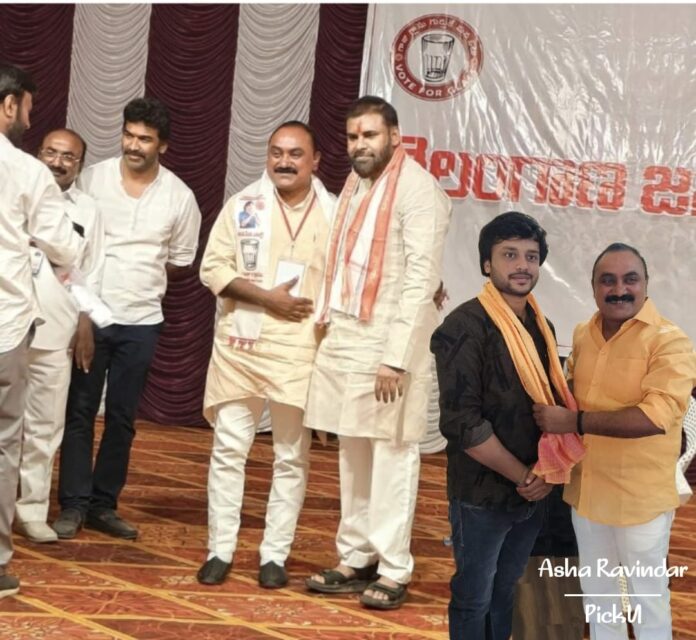నేటి సాక్షి కొండగట్టు ఆంజనేయ స్వామి ఆలయ అభివృద్ధి 35.19 కోట్ల శంకుస్థాపన కార్యక్రమనికి వచ్చిన ఏపీ డిప్యూటీ సీఎం పవన్ కళ్యాణ్ చెన్నూర్ నియోజకవర్గం నుండి తెలంగాణా రాష్ట్ర నాయకులు సిద్ధూ తన కార్యకర్తల తో భారీగా తరిలీ వెళ్లడం జరిగిందన్నారు, 2009 లో చెన్నూర్ నియోజకవర్గం లో ప్రజారాజ్యం పార్టీ కొరకు పనిచేసినా మంతెన సంపత్ చెన్నూర్ లోకల్ అభ్యర్థి ని తెలంగాణ జనసేన పార్టీలోకి ఆహ్వానించి వారిని చెన్నూర్ జనసేన పార్టీలోకి జాయిన్ చేయించడం జరిగిందన్నారు,తెలంగాణ రాష్ట్ర నాయకులు సిద్ధూ మాట్లాడుతూ చెన్నూర్ నియోజకవర్గం లో పార్టీ ఎదుగుదల కొరకు ప్రజా సమస్యల పై రాజీలేని పోరాటం చేయడానికి సంపత్ తమ ముందు ఉంటారని వారిని దృష్టిలో ఉంచుకొని వారిని పార్టీ లోకి తీసుకెళ్లానని ప్రజా రాజ్యం పార్టీ లో నాతో కలిసి పనిచేసారు అని అయన మీద నమ్మకం తోనే ఆయనని ఆహ్వానించమన్నారు. సిద్ధూ నా మాటని గౌరవించి మంతెన సంపత్ ని పవన్ కళ్యాణ్ సమక్షంలో చేర్చుకున్నoదుకు అధ్యక్షులు పవన్ కళ్యాణ్ జనసేన పార్టీ ప్రధాన కార్యదర్శి రామ్ తాళ్లూరి ని జనసేన పార్టీ వైస్ ప్రసిడెంట్ & టీటీడీ బోర్డు మెంబెర్ మహేందర్ రెడ్డి ని తెలంగాణా రాష్ట్ర ఇంచార్జ్. హియత్ నగర్ టీటీడీ ఎల్ ఏ సీ చైర్మన్ నేమురి శంకర్ గౌడ్ కి కృతజ్ఞతలు తెలిపిన సిద్ధూ..జనసేన పార్టీ లోకి కళ్యాణ్ సమక్షంలో జాయిన్ చేయడానికి కృషి చేసిన తెలంగాణ రాష్ట్ర నాయకులు సిద్ధూ కు మంతెన సంపత్ గారు కృతజ్ఞతలు తెలియజేసారు