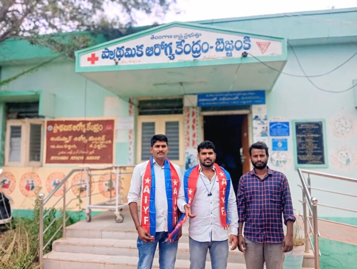 బెజ్జంకి పీహెచ్లో సిబ్బంది లేక సేవలు స్తంభననేటి సాక్షి, బెజ్జంకి:బెజ్జంకి ప్రాథమిక ఆరోగ్య కేంద్రంలో సిబ్బంది కొరతతో రోగులు తీవ్ర ఇబ్బందులు ఎదుర్కొంటున్నారని ఏఐవైఎఫ్ మండల కార్యదర్శి దొంతరవేణి మహేష్ అన్నారు. శుక్రవారం పీహెచ్సీ నీ సందర్శించి పరిస్థితిని పరిశీలించారు. ఈ సందర్భంగా మహేష్ మాట్లాడుతూ, “24 గంటల వైద్య సేవలు అందించాల్సిన కేంద్రంలో ఒకే కాంట్రాక్ట్ నర్సు విధులు నిర్వర్తిస్తోంది. ఏఎన్ఎం, సిహెచ్ఓ, ఫార్మసిస్ట్, మేల్ సూపర్వైజర్ పోస్టులు ఖాళీగా ఉన్నాయన్నారు. జిల్లా అధికారులు ఇప్పటికే రెండు సార్లు సందర్శించినప్పటికీ సిబ్బంది నియామకాలు జరగలేదని విమర్శించారు.ప్రజల ఆరోగ్యాన్ని దృష్టిలో ఉంచుకొని ప్రభుత్వం వెంటనే సిబ్బంది నియామకాలు చేపట్టాలని డిమాండ్ చేశారు.ఈ కార్యక్రమంలో ఏఐవైఎఫ్ జిల్లా మాజీ అధ్యక్షులు బోనగిరి శ్రావణ్, రొడ్డ చరణ్, అంతటి రాకేష్, ప్రకాష్, హరి తదితరులు పాల్గొన్నారు.
