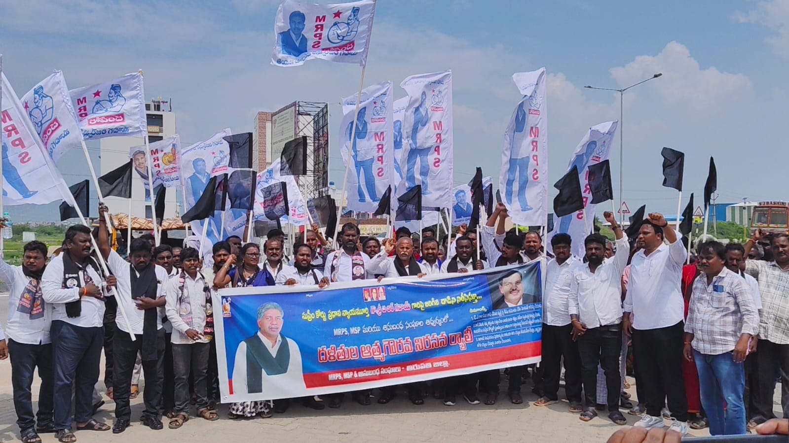 మాదిగ రిజర్వేషన్ పోరాట సమితి ఆధ్వర్యంలో కలెక్టర్ కార్యాలయం వద్ద ర్యాలీ* నేటి సాక్షి తిరుపతి (బాదూరు బాల)సుప్రీం కోర్టు ప్రధాన న్యాయమూర్తి బీఆర్ గవాయ్ పై దాడి చేసిన వారిని వెంటనే అరెస్ట్ చేయాలని డిమాండ్ చేస్తూ మాదిగ రిజర్వేషన్ పోరాట సమితి ఆధ్వర్యంలో దళితుల ఆత్మగౌరవ ర్యాలీని తిరుపతిలోని కలెక్టర్ కార్యాలయం నిర్వహించారు ఈ సందర్భంగా నాయకులు మాట్లాడుతూ సుప్రీం ప్రధాన న్యాయమూర్తి బి ఆర్ గవాయ్ పై దాడి చేసిన వారిని వెంటనే అరెస్టు చేయాలని దాడి వెనుక ఉన్న శక్తులను గుర్తించి వారికి కూడా శిక్షలు పడేలా స్వతంత్ర దర్యాప్తు చేయాలి. అందుకోసం సుప్రీం కోర్టులో ప్రజాస్వామికవాదులుగా గుర్తించబడ్డ సినియర్ జడ్జిలతో విచారణ చేయించాలన్నారు ఇలాంటి సంఘటనలు పునరావృతం కాకుండా తగు చర్యలు తీసుకునేలా కేంద్ర, రాష్ట్ర ప్రభుత్వాలు తగిన చర్యలు చేపట్టాలని డిమాండ్ చేశారు. అనంతరం కలెక్టర్ కు వినతిపత్రాన్ని అందజేశారు ఈ కార్యక్రమంలో తిరుపతి జిల్లా ఇన్చార్జి వావిళ్ళ శివయ్య, దేవదాసు తిరుపతి ఎమ్మార్పీఎస్ నాయకులు మాసారుపు గోపి, కారుమంచి మధు తదితరులు పాల్గొన్నారు