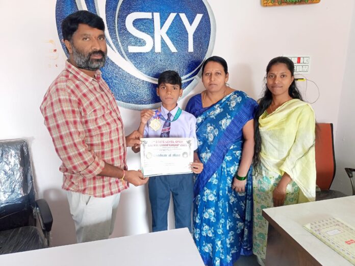 స్కై స్కూల్ విద్యార్థి అఖిల్‌కు రాష్ట్ర స్థాయి బంగారు పతకం– అభినంచిన పాఠశాల యాజమాన్యం