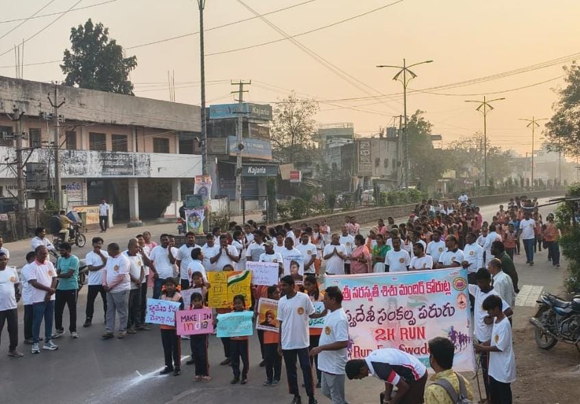 నేటి సాక్షి – కోరుట్ల*( రాధారపు నర్సయ్య )కోరుట్ల పట్టణంలో శ్రీ సరస్వతి శిశు మందిర్ పాఠశాల ఆధ్వర్యంలో స్వదేశీ వస్తువుల వినియోగంపై ప్రజల్లో అవగాహన కల్పించే ఉద్దేశంతో మంగళవారం ఉదయం ‘స్వదేశీ సంకల్ప పరుగు – 2కే రన్’నిర్వహించారు. *స్వదేశీ వస్తు వినియోగంపై అవగాహన కలిగి ఉండాలి*ఈ కార్యక్రమానికి ముఖ్య అతిథిగా హాజరైన ఐఎంఏ రాష్ట్ర అధ్యక్షురాలు డాక్టర్ స్వీతీ అనూప్ మాట్లాడుతూ, నేటి దేశ పరిస్థితుల్లో ప్రతి ఒక్కరూ స్వదేశీ వస్తువులను వినియోగించాల్సిన అవసరం ఎంతగానో ఉందని పేర్కొన్నారు. ఈ దిశగా సరస్వతి శిశు మందిర్ వారు స్వదేశీ సంకల్ప పరుగు నిర్వహించడం అభినందనీయమని తెలిపారు. స్వదేశీ వస్తువుల వినియోగం ద్వారా దేశ ఆర్థిక వ్యవస్థ బలపడుతుందని, ప్రతి పౌరుడు దేశాభివృద్ధిలో భాగస్వామిగా మారాలని ఆమె పిలుపునిచ్చారు.*గర్వకారణంగా స్వదేశీ సంకల్ప పరుగు*పాఠశాల ప్రబంధ కారిణి అధ్యక్షులు డాక్టర్ వేముల రవి కిరణ్ మాట్లాడుతూ, ప్రపంచ ఆర్థిక వ్యవస్థలో భారత్ నాలుగో స్థానం నుంచి మూడో స్థానానికి ఎదగడంలో స్వదేశీ వస్తువుల వినియోగం కీలక పాత్ర పోషిస్తుందని తెలిపారు. వివేకానంద స్వామి జయంతి, సుభాష్ చంద్రబోస్ జయంతి సందర్భాన్ని పురస్కరించుకొని ఈ స్వదేశీ సంకల్ప పరుగు నిర్వహించడం గర్వకారణమని అన్నారు. ఈ కార్యక్రమంలో డాక్టర్ ఒడ్నాల నరేష్, ప్రబంధ కారిణి కార్యదర్శి వనపర్తి చంద్రమోహన్, కోశాధికారి నీలి శ్రీనివాస్, సమితి ఉపాధ్యక్ష కార్యదర్శులు వడ్లకొండ రాజ గంగాధర్, చెట్లపల్లి శంకర్, ప్రబంధ కారిణి సభ్యులు, ఆర్ఎస్ఎస్ ప్రతినిధులు, పాఠశాల ప్రధానాచార్యులు గోపు వెంకటేష్, ఆచార్య బృందం, పోషకులు, విద్యార్థినీ–విద్యార్థులు కలిపి సుమారు 250 మంది పాల్గొని కార్యక్రమాన్ని విజయవంతం చేశారు. ఈ సందర్భంగా సహకరించిన ప్రతి ఒక్కరికీ పాఠశాల యాజమాన్యం కృతజ్ఞతలు తెలిపింది._______