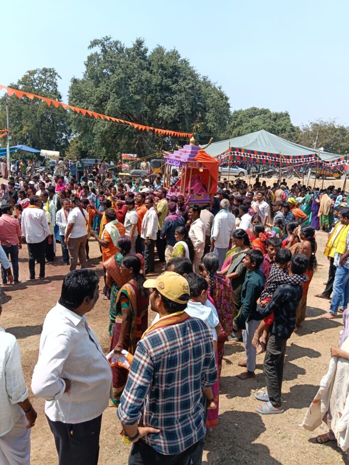 నేటి సాక్షి, మునగాల( పాముల రాఘవేందర్) సూర్యపేట జిల్లా మునగాల మండలం రేపాల గ్రామంలో వెలసిన స్వయంభూ శ్రీ లక్ష్మీనరసింహ స్వామి దేవస్థానంలో జరుగుతున్న పావనమైన జాతర మహోత్సవాలు గత పది రోజులుగా అత్యంత భక్తి శ్రద్ధలతో, ఆధ్యాత్మికోత్సాహంతో కొనసాగుతున్నాయి. ఈ మహోత్సవాల చివరి దినమైన శుక్రవారం వసంతోత్సవ మహోత్సవం ( గాందోలి) సందర్భంగా ఆలయ ప్రాంగణం భక్తజన సందోహంతో నిండిపోయి, భక్తి పరవశ వాతావరణం అలుముకుంది.ఈ పవిత్ర సందర్భంలో కోదాడ నియోజకవర్గ మాజీ ఎమ్మెల్యే బొల్లం మల్లయ్య యాదవ్ స్వామివారి దివ్య సన్నిధికి విచ్చేసి, పరమ భక్తి భావంతో స్వామివారిని దర్శించుకొని ప్రత్యేక పూజా కార్యక్రమాలలో పాల్గొన్నారు. స్వామివారి పాదసేవను ఆచరించి దివ్య అనుగ్రహం, కృపాకటాక్షాలు పొందారు.అనంతరం బీఆర్ఎస్ పార్టీ నాయకులు, కార్యకర్తలు మల్లయ్య యాదవ్ కి గజమాలతో ఘన స్వాగతం పలికి సత్కరించారు. మహిళలు తిలకం దిద్ది స్వాగతం పలికారు. మల్లన్న అభిమానులు, యువకులు మల్లన్న, మల్లన్న అంటూ జాతరలో వసంతోత్సవం సంబరాలు జరుపుకున్నారు. అనంతరం బొల్లం మల్లయ్య యాదవ్ చేతుల మీదుగా పుణ్యప్రదమైన మహా అన్నదాన సేవా కార్యక్రమం ఘనంగా ప్రారంభమైంది. స్వామివారి ప్రసాదంగా భావించి భక్తజనులకు భక్తి భావంతో అన్నసంతర్పణ నిర్వహించారు.ఈ సందర్భంగా మల్లయ్య యాదవ్ మాట్లాడుతూ.రేపాల గ్రామంలో వెలసిన స్వయంభూ శ్రీ లక్ష్మీనరసింహ స్వామి మహిమ అపారమైందని, ఈ దివ్య క్షేత్రాన్ని దర్శించిన ప్రతి భక్తులపై స్వామివారి దివ్య అనుగ్రహం, ఐశ్వర్యం, ఆయురారోగ్యాలు ప్రసాదించాలని ప్రార్థించారు. భక్తులందరికీ స్వామివారి శాంతి, సౌభాగ్యం, క్షేమం కలగాలని ఆకాంక్షించారు.ఈ మహోత్సవ సందర్భంగా భక్తులు అధిక సంఖ్యలో పాల్గొని స్వామివారి దివ్య దర్శనం చేసుకొని భక్తుల కుటుంబాల సౌఖ్యం, సమృద్ధి, ఐశ్వర్యం కోసం పూజలు నిర్వహించామని తెలిపారు. .స్వామివారి దివ్య కృపాకటాక్షాలు సమస్త భక్తజనులపై నిత్యం ప్రసన్నంగా ఉండాలని మనసారా ప్రార్థించారు. ఆలయం అంతా భక్తులతో జై లక్ష్మీనరసింహస్వామి జై అంటూ నినాదించారు. ఈ కార్యక్రమంలో రేపాల సర్పంచ్ మొగిలిచర్ల సత్యనారాయణ, పల్లి ఆదిరెడ్డి,సారిక పెద్ద రామయ్య, గుండు దేవదాసు, గండు హనుమంతు,పోనుగోటి రంగా, మొగిలిచర్ల రమేష్, తదితరులు పాల్గొన్నారు.