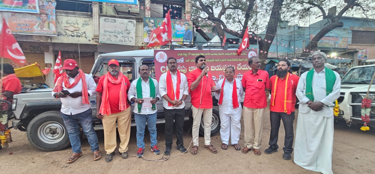 నేటి సాక్షి 12 జనవరి పాములపాడు :—భారతదేశ పేద ప్రజల పోరాటాల సింహ స్వప్నం, శ్రమజీవులకు అండగా ఉన్న సీపీఐ వందేళ్ళ శతవసంతాలు పూర్తి చేసుకున్న సందర్భంగా లక్షలాది మందితో జనవరి 18న ఖమ్మంలో జరిగే బహిరంగ సభను జయప్రదం చేయాలని సిపిఐ జిల్లా కార్యదర్శి ఎన్ రంగ నాయుడు, బాబా ఫకృదన్,కార్యవర్గ సభ్యులు ఏం. రమేష్ బాబు లు పిలుపునిచ్చారు. సోమవారం పాములపాడు మండల కేంద్రంలో శతాబ్ది ఉత్సవాల జయప్రదం కోరుతూ జిపు జాత మండలనికి చేరుకుంది.. ఈ సందర్భంగా వారు మాట్లాడుతూ జనవరి 18వ తేదీన ఖమ్మం నగరంలో సిపిఐ శత వసంతాల వేడుకలను ఘనంగా జరగనున్నాయని స్వాతంత్రం సాధించిన తర్వాత ఎన్నో త్యాగాలతో నిర్బంధాలతో ఎన్నో పోరాటాలు ఎన్నెన్నో త్యాగాలు చేసింన సీపీఐ భూమి కోసం భుక్తి కోసం ప్రజల విముక్తి కోసం సామజిక న్యాయం కోసం అనేక పోరాటాలు నిర్వహించిందని భారతదేశ కమ్యూనిస్టు ఉద్యమంలో అంతర్భాగంగా ఆంధ్ర రాష్ట్రంలో కమ్యూనిస్టు పార్టీ 1932లోనే ప్రారంభమయ్యిందని నందికొట్కూరు నియోజకవర్గం ప్రాంతంలో అనేక పోరాటాలకు నాంది పలికి పేదలకు మౌలిక సదుపాయాలు కావాలని భూ పంపిణీ చేయాలని పోరాటాలు కొనసాగించిందన్నారు.ఈ నేపథ్యంలో భారత కమ్యూనిస్టు పార్టీ వంద సంవత్సరాలు పూర్తిచేసుకుంటున్నది. ఈ దేశంలో నేటి ప్రమాదకర పరిస్థితులలో శ్రామికవర్గ ప్రయోజనాలను పరిరక్షించుకునేందుకు ఏ రూపంలో ఉన్నా కమ్యూనిస్టులందరూ ఏకం కావలసిన అవసరం ఉన్నది. ఈ లక్ష్యంతో కమ్యూనిస్టు పార్టీ ముందుకు సాగుతున్నదని ముందుతరాల త్యాగాలతో పునీతమైన ఎర్ర జెండా రెండవ శతాబ్దంలోకి అడుగుపెడుతూ సోషలిజం అంతిమ లక్ష్యంగా, ప్రజాతంత్ర శక్తుల ఐక్యత కోసం ముందుకు సాగుతున్నదిఅని ఆ ఎర్ర జెండాను ఆదరించమని, దాని ద్వారా శ్రమజీవుల హక్కుల రక్షణకు హామీ లభించగలదని మరోసారి ప్రకటిస్తున్నదిఅని రైతులు సకల రంగాల శ్రమజీవుల కోసం జరుగు జనవరి 18న ఖమ్మం పట్టణంలో జరిగే శతాబ్ది ఉత్సవాల ముగింపు ప్రదర్శన, బహిరంగ సభలలో పాల్గొని జయప్రదం చేయవలసినదిగా కోరారుఈ కార్యక్రమంలో సిపిఐ జిల్లా కార్యవర్గ సభ్యులు రాధాకృష్ణ, భార్గవ్, సుబ్బారెడ్డి, సోమన్న, తదితరులు పాల్గొన్నారు..