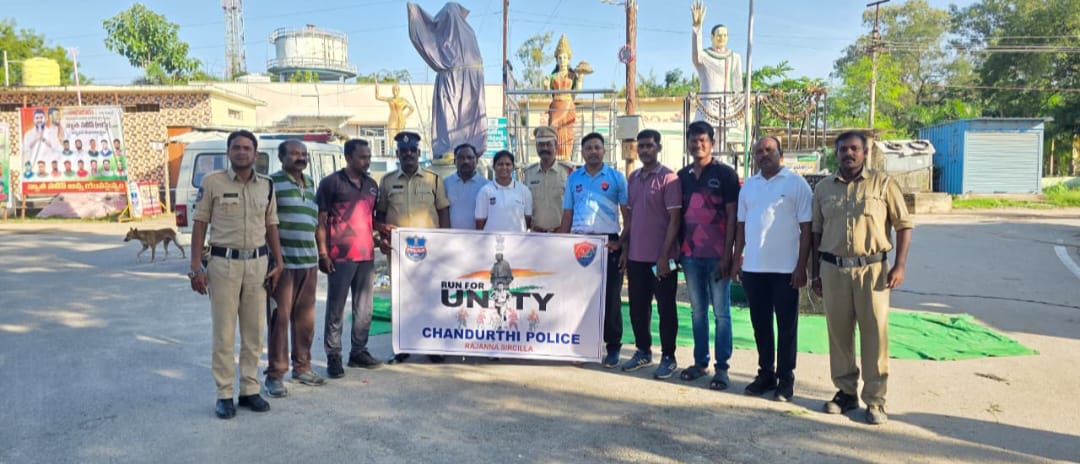 రన్ ఫర్ యూనిటీ…- సర్దార్ వల్లభాయ్ పటేల్ జయంతి 150వ (ఏక్తాదివాస్) సందర్భంగా “రన్ ఫర్ యూనిటీ” 2 కె రన్ నిర్వహించిన చందుర్తి పోలీస్…భారత ఐక్యతా స్ఫూర్తికి, ప్రజల్లో జాతీయ ఐక్యత సామరస్యం, దేశభక్తి భావం పట్ల అవగాహన కల్పించడమే లక్ష్యమని సర్దార్ వల్లభభాయి పటేల్ 150వ జయంతి (ఏక్తాదివాస్) పురస్కరించుకొని శుక్రవారం రాజన్న సిరిసిల్ల ఎస్పి మహేష్ బి గీతే ఆదేశాల మేరకు చందుర్తి మండల కేంద్రంలో చందుర్తి ఎస్సై జే రమేష్ ఆధ్వర్యంలో బస్టాండ్ నుండి అమరవీరుల స్థూపం, అంబేద్కర్ చౌరస్త మీదుగా 2కె రన్ ను నిర్వహించడం జరిగింది. ఈ కార్యక్రమంలో పోలీస్ సిబ్బంది, ప్రింట్ మరియు ఎలక్ట్రానిక్ మీడియా ప్రతినిధులు, విద్యార్థిని, విద్యార్థులు మరియు అథ్లెట్స్, యువకులు, 108 సిబ్బంది పాల్గొనడం జరిగింది.