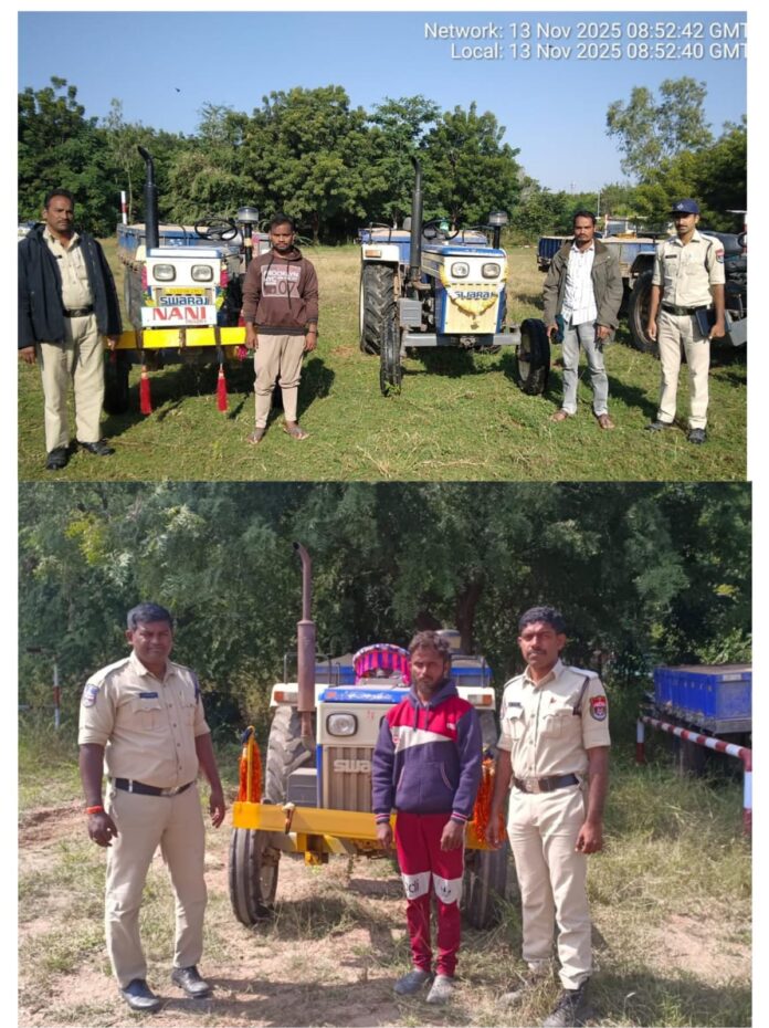 ***పత్రిక ప్రకటన***అక్రమ ఇసుక రవాణా చేస్తున్న ట్రాక్టర్ల పట్టివేతకరీంనగర్ రూరల్, తేదీ: 13.11.2025 రోజున పోలీసులు గ్రామాల్లో పెట్రోలింగ్ నిర్వహిస్తుండగా తీగలు గుట్టపల్లిలోని రైల్వే గేటు వద్ద మరియు బొమ్మకల్లోని ఫ్లైఓవర్ బ్రిడ్జి వద్ద అక్రమ ఇసుక రవాణా చేస్తున్న ట్రాక్టర్లను కరీంనగర్ రూరల్ పోలీసులు పట్టుకున్నారు, వివరాల్లోకి వెళితే గొల్లపల్లి గ్రామం సుల్తానాబాద్ మండలానికి చెందిన బొంకురి నరేష్ మరియు పున్న గంగరాజు అనువారు తమ ట్రాక్టర్ మరియు ట్రైలర్ల నందు ఇసుకను అక్రమంగా కరీంనగర్ వైపు తరలిస్తున్న క్రమంలో పోలీసులు తీగలగుట్టపల్లి లోని రైల్వే గేటు వద్ద పట్టుకున్నారు మరియు బొమ్మకల్ గ్రామానికి చెందిన ఏడేల్లి రాజు అనునతడు తన ట్రాక్టర్ మరియు ట్రైలర్ నందు ఎలాంటి అనుమతులు లేకుండా అక్రమంగా ఇసుకను తరలిస్తుండగా బొమ్మకల్ లోని ఫ్లై ఓవర్ బ్రిడ్జి వద్ద కరీంనగర్ రూరల్ పోలీసులు పట్టుకున్నారు, పై ముగ్గురి మీద కేసు నమోదు చేసి ట్రాక్టర్లను సీజ్ చేసి తదుపరి చర్య నిమిత్తం కోర్టుకు పంపనైనది మరియు మరొక సారి అక్రమ రవాణా చేయకుండా కరీంనగర్ రూరల్ ఏంఆరో గారి ముందు హాజరు పరచి మూడు లక్షల పూచికత్తుతో బైండోవర్ చేయడమైనది అని కరీంనగర్ రూరల్ సీఐ ఏ. నిరంజన్ రెడ్డి గారు తెలిపారు.ఇట్లు ఏ.నిరంజన్ రెడ్డిఇన్స్పెక్టర్ ఆఫ్ పోలీస్ కరీంనగర్ రూరల్ పీస్