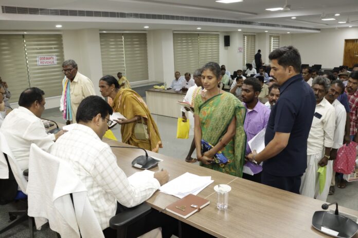 నేటి సాక్షి ప్రతినిధి గద్వాల్ ( రమేష్ ) : జోగులాంబ గద్వాల జిల్లా(మార్చి 10) ప్రజావాణి కార్యక్రమానికి ప్రాధాన్యతనిస్తూ వచ్చిన ఫిర్యాదులను సత్వరమే పరిష్కరించాలని జిల్లా కలెక్టర్ బి.యం. సంతోష్ అధికారులకు సూచించారు. కలెక్టర్ కార్యాలయంలోని సమావేశ మందిరంలో సోమవారం నిర్వహించిన ప్రజావాణి కార్యక్రమానికి (38) ఫిర్యాదులు అందాయి. జిల్లాలోని వివిధ ప్రాంతాల నుండి వచ్చిన ఫిర్యాదుదారులు తమ సమస్యలను పరిష్కరించాలని విన్నవిస్తూ అర్జీలను జిల్లా కలెక్టర్ కు సమర్పించారు. వచ్చిన అర్జీలను పెండింగ్ లో పెట్టకుండా ఎప్పటికప్పుడు పరిశీలన జరుపుతూ.. సమస్యలను సత్వరమే పరిష్కరించాలని కలెక్టర్ అధికారులకు సూచించారు. ఈ కార్యక్రమంలో జిల్లా అదనపు కలెక్టర్లు లక్ష్మి నారాయణ, నర్సింగ రావు, ఆర్డీఓ శ్రీనివాస రావు, వివిధ శాఖల అధికారులు, తదితరులు పాల్గొన్నారు.