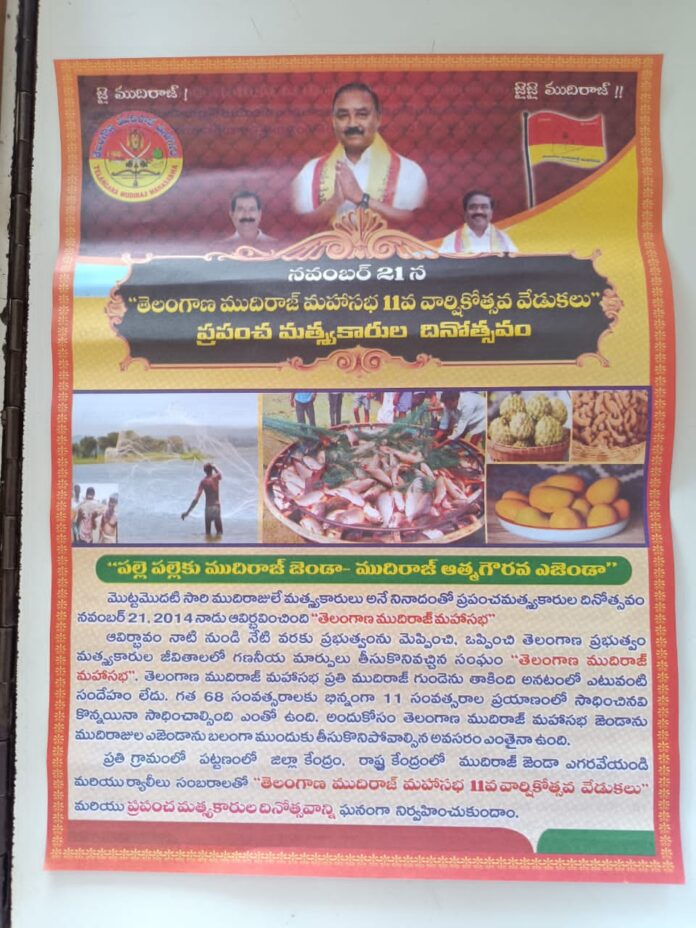 నేటి సాక్షి. కొమరం భీమ్ ఆసిఫాబాద్ తెలంగాణ ముదిరాజ్ మహాసభ కొమురం భీం ఆసిఫాబాద్ జిల్లా అధ్యక్షులు సెర్ల మురళీధర్. ఈరోజు తేదీ 19.11.2025 బుధవారం రోజున కొమురం భీమ్ ఆసిఫాబాద్ జిల్లా ఇప్పల నవెగాo లో 11వ వార్షికోస్తవ వేడుకలు 21–11–2025 రోజున జరుపుకోవాలని ముదిరాజ్ జిల్లా అధ్యక్షులు సెర్ల మురళీధర్ గోడ ప్రతులు ఆవిష్కరించారు. ఆత్మ గౌరవం ఎజెండా పల్లె పల్లె కు ముదిరాజ్ జెండా ఎత్తి కొమురం భీం జిల్లా ముదిరాజలకు రావలసిన హక్కులు అభయహస్తo కామారెడ్డి BC డిక్లరేషన్ లో చెప్పిన విధముగా 42% విద్యా ఉద్యోగాలలో రిజర్వేషన్లు కల్పించాలి. పెరిగే రిజర్వేషన్లలలో ముదిరాజ్ లకు జనాభా కు తగినట్లు మా వాటా ఇవ్వవలసిందిగా కోరుతున్నాము రాబోవు స్థానిక సంస్థల ఎన్నికలలో 42% రిజర్వేషన్లు బీసీలకు కల్పించాలి అభయ హస్తం లో పేర్కున్న హామీ ప్రకారం పెరిగే రిజర్వేషన్లులలో జివో. 15 తేది 19-02-2009 ముదిరాజ్ / ముత్తరాసి / తెనుగోల్లు బి.సి.డి నుండి బి.సి.ఏ పునరుద్ధరణ చేసి తక్షణమే బి.సి. ఏ లో చేర్చాలి. అన్ని జిల్లాలలో విష రిప్ సొసైటీల ఎన్నికలు పూర్తి చేయాలిమత్యసంపద దోపిడీ నివారనకొరకు మత్య సంరక్షణ చట్టం ఏర్పాటు చేయాలి. ముదిరాజ్ కార్పోరేషన్ ఏర్పాటుచేసి 1000 కోట్లు రూపాయలు కేటాయించాలి. తెలంగాణ మత్యళాకకు 3000 కోట్ల రూపాయలు కేటాయించి, వివిధ పదకాల రూపంలో మత్యకార కుటుంబాలను ఆదుకోవాలి. ప్రభుత్వ నామినేటెడ్ పోస్ట్లులో ముదిరాజు లకు అవకాశం కల్పించాలి..GO.M.S.NO 98,22:22-01-1964 (8),GO.M.S.NO.74,GO.M.S. NO.4,GO.M.S.NO.6 జీవోల ప్రకారం చెరువులు కుంటలపై మత్యసంపద పై తెనుగు / ముత్తరాసి /ముదిరాజ్, బెస్త, గంగపుత్ర మరియు గుండ్ల కులాలకు మాత్రమే హక్కులు వుండే విధముగా చట్టపరమైన ఆదేశాలు జారీ చేయవలసిందిగా ముదిరాజ్ జిల్లా అధ్యక్షులు సెర్ల మురళీధర్ కోరుతున్నారూ.ఈ కార్యక్రమంలో పాల్గొన్న వారు.1) పులి సతీష్ – మండల అధ్యక్షులు 2) బోడ్ల శ్రీను 3) గుమ్ముల బాలేష్ 4) ఏటకార్ల రవి 5) శ్రీకాంత్
