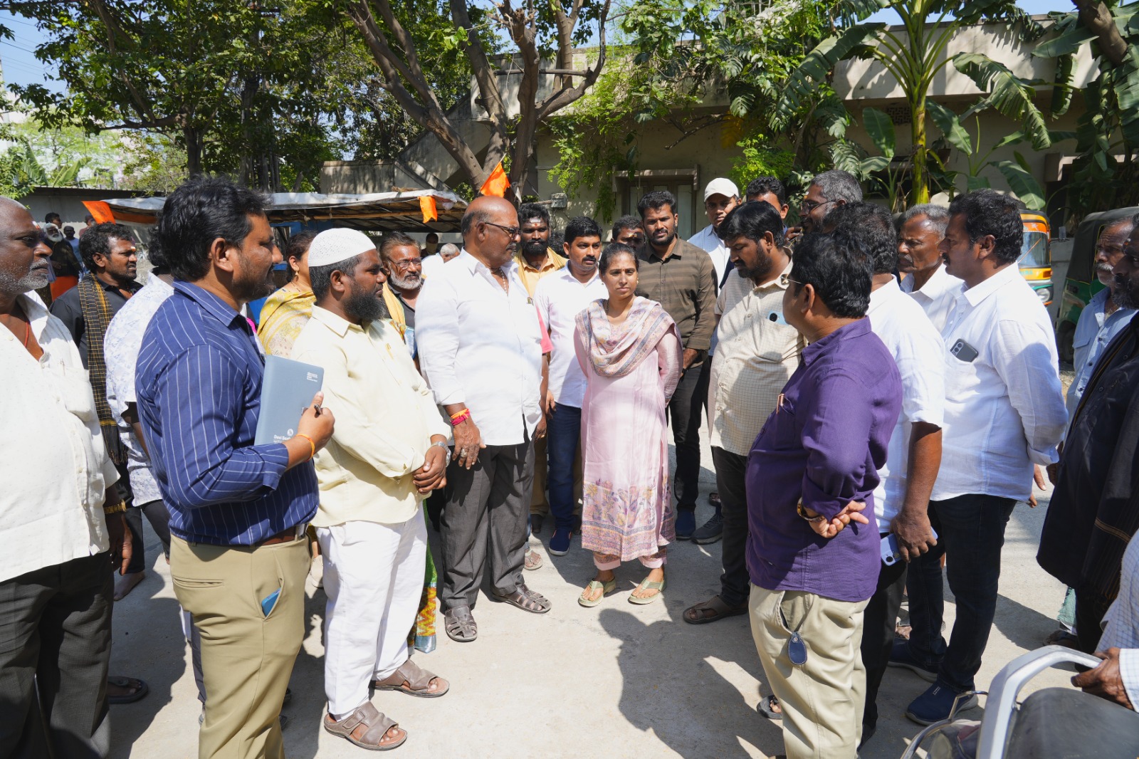 *నేటి సాక్షి, గుంటూరు జిల్లా ప్రతినిధి ప్రజా సమస్య ఏదైనా సరే వెంటనే పరిష్కారం చేసే విధంగా కృషి చేస్తానని ఎమ్మెల్యే గళ్ళ మాధవి అన్నారు.గుంటూరు పశ్చిమ నియోజకవర్గ ఎమ్మెల్యే శ్రీమతి గళ్ళా మాధవి 39వ డివిజన్లో పర్యటించారు. బుధవారం ప్రజా గ్రీవెన్స్లో నమోదైన సమస్యలను, డివిజన్ కు నేరుగా వెళ్లి ప్రత్యక్షంగా పరిశీలించారు. మారుతీ నగర్, నాయీ బ్రాహ్మణ కాలనీ పరిధిలో రోడ్లు, డ్రైనేజీలు, వీధి దీపాలు, ఆక్రమణలు వంటి పలు సమస్యలను క్షేత్రస్థాయిలో పరిశీలించి సంబంధిత అధికారులకు తక్షణ చర్యలు తీసుకోవాలని సూచించారు. మారుతీ నగర్ 5వ లైన్లో రోడ్డుకు సంబంధించిన ఆక్రమణల పై స్థానిక ప్రజలు ఎమ్మేల్యే గళ్ళా మాధవి దృష్టికి తీసుకొని వచ్చారు.అలాగే మారుతీ నగర్ బి సి కమ్యూనిటీ హాల్ను పరిశీలించి, హాల్కు సంబంధించిన టెండర్ వివరాలను సేకరించి తనకు అందించాలని అధికారులను ఎమ్మెల్యే గళ్ళా మాధవి ఆదేశించారు. ముస్లింల స్మశాన వాటిక వద్ద జంగిల్ క్లియరెన్స్ను ఒక వారంలో పూర్తి చేయాలని స్పష్టం చేశారు. రైల్వే ట్రాక్ రోడ్కు 3 మీటర్ల రోడ్ మంజూరు పై అధికారులతో చర్చించి త్వరలో నిర్ణయం తీసుకుంటామని అన్నారు. దూళిపాళ్ల ఆర్చి వద్ద రెండు స్పీడ్ బ్రేకర్లు ఏర్పాటు చేయాలని ఆదేశించడమే కాకుండా, మారుతీ నగర్లో కొన్నిచోట్ల వీధి దీపాలు లేకపోవడంతో అవి వెంటనే ఏర్పాటు చేయాలని అధికారులను ఆదేశించారు.ఈ కార్యక్రమంలో సింగంశెట్టి వీరయ్య,రుస్తుం బాబు,రఫీ, ఈశ్వరు, కొండబోయిన శ్రీనివాస్, అబ్దుల్ ఖాదర్ బుడే, మస్తాను, మేరయ్య తదితరులు పాల్గొన్నారు.