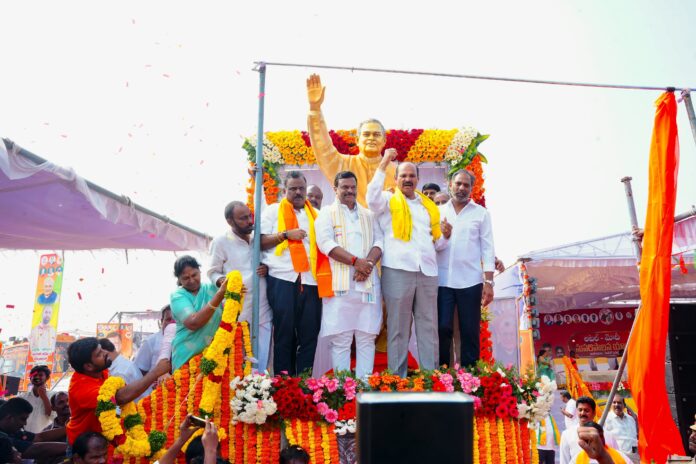 దేశ రాజకీయాల్లో అజాత శత్రువు వాజపేయి** స్వర్ణ చతుర్భుజి ద్వారా దేశ రూపు రేఖల్ని మార్చారు* వాజపేయి స్పూర్తితో దేశాన్ని అభివృద్ధి చేస్తున్న ప్రధాని మోదీ* ఇంధన శాఖ మంత్రి గొట్టిపాటి రవికుమార్నేటి సాక్షి,బాపట్ల జిల్లా ప్రతినిధి దేశ రాజకీయాల్లో మాజీ ప్రధాని అటల్ బిహార్ వాజపేయి అజాత శత్రువు గుర్తింపు పొందారని ఇంధన శాఖ మంత్రి గొట్టిపాటి రవి కుమార్ కీర్తించారు. అటల్ సందేశ్ – మోదీ సుపరిపాలన యాత్ర మంగళవారం నాడు బాపట్ల చేరుకున్న సందర్భంగా మంత్రులు అనగాని సత్య ప్రసాద్, కొలుసు పార్థ సారధితో పాటు బీజేపీ రాష్ట్ర అధ్యక్షులు మాధవ్ తో కలిసి వాజపేయి కాంస్య విగ్రహాన్ని బాపట్లలో ఆవిష్కరించారు. ఈ సందర్భంగా మంత్రి గొట్టిపాటి మాట్లాడుతూ.. లోక్ సభకు 9 సార్లు, రాజ్యసభకు రెండు సార్లు ఎన్నిక కావడమే కాకుండా, మూడుసార్లు దేశ ప్రధానిగా ప్రజలకు ఎనలేని సేవ చేసిన భరతమాత ముద్దు బిడ్డ వాజపేయి అని కొనియాడారు. ఒక్క ఓటుతో ప్రధాని పదవికి దూరమైనా., హుందాగా పదవి నుంచి తప్పుకుని వంద కోట్ల భారతీయుల మనసు గెలిచారని మంత్రి గొట్టిపాటి గుర్తు చేశారు. దేశంలో జాతీయ, గ్రామ రహదారుల అభివృద్ధి వంటి మౌలిక వసతులు ఏర్పాటు ద్వారానే దేశ సత్వర సర్వతో ముఖాభివృద్ధి సాధ్యమని నమ్మి స్వర్ణ చతుర్భుజి ప్రాజెక్టును ప్రారంభించారని ఆయన వెల్లడించారు.కాశ్మీర్ నుంచి కన్యా కుమారి వరకు రహదారులను నిర్మించిన మాజీ ప్రధాని వాజపేయి.. స్వాతంత్య్రం తరువాత నవ, యువ భారత్ నిర్మాణంలో కీలక భూమిక పోషించారని ఇంధన శాఖ మంత్రి గొట్టిపాటి రవికుమార్ స్పష్టం చేశారు. 8 లక్షల కిలోమీటర్ల గ్రామీణ రోడ్లతో పాటు, 5 వేల కిలోమీటర్ల జాతీయ రహదారులను దశాబ్ధాల క్రితమే నిర్మించారని తెలిపారు. రాజకీయాల కంటే దేశ అభివృద్ధి ముఖ్యమని భారతరత్న వాజపేయి భావించారని మంత్రి స్పష్టం చేశారు. 23 రాజకీయ పార్టీలను ఒక తాటిపైకి తేవడమే కాకుండా మిస్సైల్ మ్యాన్ ఆఫ్ ఇండియా అబ్దుల్ కలాం ను దేశ రాష్ట్రపతిని చేసిన ఘనత కూడా వాజపేయిదే అన్నారు. ఇలా చెప్పుకుంటూ పోతే మాజీ ప్రధాని వాజపేయి చేసిన అభివృద్ధి కార్యక్రమాలు ఎన్నో ఉన్నాయన్నారు. వాజపేయి ఆదర్శాలను, ఆశయాలను స్పూర్తిగా తీసుకున్న, ప్రధాని నరేంద్ర మోదీ కూడా వందే భారత్ ద్వారా రైల్వేల అభివృద్ధిలో తనదైన ముద్ర వేశారని కొనియాడారు. వాజ్ పేయ్ కాంస్య విగ్రహం ఆవిష్కరణలో పాల్గొనడం తన జీవితంలో మరపురాని ఘట్టమని మంత్రి గొట్టిపాటి హర్షం వ్యక్తం చేశారు. కార్యక్రమంలో కూటమి నేతలు పాల్గొన్నారు.[16/12, 6:41 pm] Naimulla Bapatla: *గ్రామాల అభివృద్ధే కూటమి ప్రభుత్వ ధ్యేయం*•తారు రోడ్లతో గ్రామీణ రహదారులకు కళ•శరవేగంగా బొల్లాపల్లి రహదారి నిర్మాణం•ఎమ్మెల్యే ఏలూరి సాంబశివరావునేటి సాక్షి,బాపట్ల జిల్లా (పర్చూరు)గ్