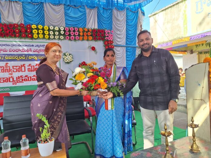 నూతన పాలక వర్గం చేతికి గ్రామపంచాయతీ పగ్గాలు.. నేడే ప్రమాణ స్వీకారం బుగ్గారం ఇటీవల గ్రామపంచాయతీ ఎన్నికల్లో గెలుపొందిన సర్పంచ్ అభ్యర్థి నక్క రాజవ్వ మరియు ఉప సర్పంచ్ వార్డు మెంబర్లు సోమవారం ప్రమాణ స్వీకారం చేసి నూతన పాలక వర్గం కొలువు దిరింది.స్పెషల్ ఆఫీసర్లు, కార్యదర్శి లు నూతన ఎన్నికైన వారి చేత ప్రమాణ స్వీకరం చేయించారు.అనంతరం సర్పంచ్, ఉపసర్పంచ్, వార్డ్ మెంబెర్ లను గ్రామ ప్రజలు పలువురు పూల మాల వేసి శాలువాతో సత్కరించారు.ప్రమాణ స్వీకరం అనంతరం నూతన పాలక వర్గానికి శుభాకాంక్షలు తెలిపారు.దింతో ఈ రోజు నుండి గ్రామపంచాయతీ ల్లో నూతన పాలక వర్గంతో పాలన కొనసాగుతుంది.గత రెండు సంవత్సరాల కాలంగా స్పెషల్ ఆఫీసర్ల పాలన కొనసాగింది.నేటి నుండి నూతన పాలక వర్గం చేతికి పగ్గాలు స్పెషల్ ఆఫీసర్లు, గ్రామపంచాయతీ కార్యదర్శి పగ్గాలు అప్పజెప్పారు.
