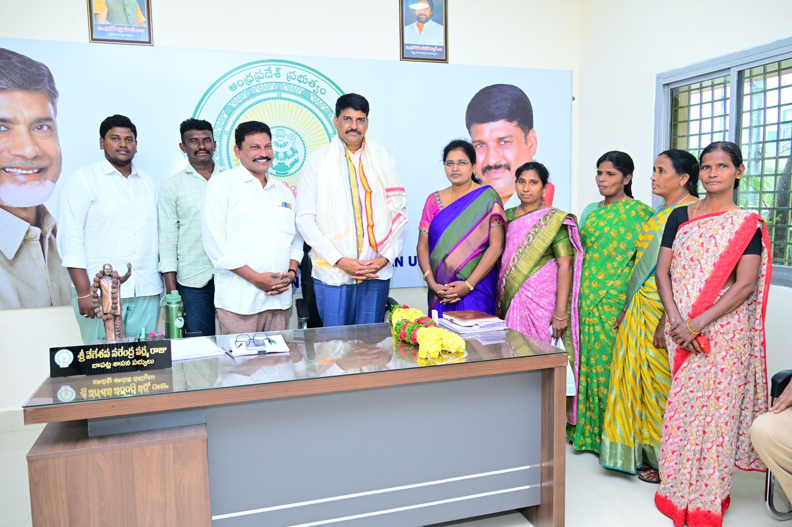 *ప్రభుత్వ సంక్షేమ అభివృద్ధి పథకాలు ప్రజలకు తెలుపుతాం** ప్రతిపక్షాల విమర్శలకు దీటైన సమాధానం ఇస్తాం * తెలుగుదేశం పార్టీ జిల్లా అధికార ప్రతినిధి డాక్టర్ గ్లోరి యానెట్నేటి సాక్షి,బాపట్ల జిల్లా ప్రతినిధి బాపట్ల జిల్లా తెలుగుదేశం పార్టీ అధికార ప్రతినిధి డాక్టర్ గ్లోరి యానెట్ సౌపాటి బాపట్ల జిల్లా కమిటీలో స్థానము కల్పించినందుకు శుక్రవారం గౌరవ శాసనసభ్యులు వేగేశన నరేంద్ర వర్మ ని కలసి కృతజ్ఞతలు తెలిపారు. ఈ సందర్భంగా గౌరవ శాసనసభ్యులు మాట్లాడుతూ మన పార్టీలో కష్టపడిన ప్రతి ఒక్కరికి గుర్తింపు ఉంటుందని తెలిపారు.సరైన సమయంలో సముచిత స్థానం కల్పించబడుతుందని తెలిపారు. మీకు ఈ పదవితో మీ బాధ్యత మరింత పెరిగిందని మీరు మండల స్థాయి నుంచి జిల్లా స్థాయికి రావటం మీరు పార్టీ కోసం చేసిన కృషి కష్టంకి ఫలితమని భవిష్యత్తులో పార్టీ కోసం పని చేస్తూ మరెన్నో మంచి పదవులు అలంకరించాలని ఈ సందర్భంగా ఆశీర్వదించారు.ఈ సందర్భంగా డాక్టర్ గ్లోరీ మాట్లాడుతూ సామాన్య మహిళనైన నన్ను ఆదరించి అభిమానించి ఈ జిల్లా స్థాయి పదవి కి ఎంపిక చేసిన శాసనసభ్యులు గౌరవనీయులు నరేంద్ర వర్మ కి ప్రత్యేక కృతజ్ఞతలు అదేవిధంగా జిల్లా తెలుగుదేశం పార్టీ అధికార ప్రతినిధిగా నియమించిన జాతీయ అధ్యక్షులు ముఖ్యమంత్రివర్యులు గౌరవనీయులు నారా చంద్రబాబు నాయుడు కి రాష్ట్ర అధ్యక్షులు గౌరవనీయులు పల్లా శ్రీనివాసరావు కి గౌరవ శాసనసభ్యులు నరేంద్ర వర్మ గారికి బాపట్ల మార్కెట్ యార్డ్ చైర్మన్ కావూరిశ్రీనివాస రెడ్డి గారికి గౌరవనీయులు పెద్దలు గురువర్యులు ఆత్మీయులు శ్రీ లక్కం రాజు వెంకటపతి రాజు గారికి సీనియర్ నాయకులు గౌరవనీయులు కనుమూరి సాంబమూర్తి రాజు కి సహకరించిన కూటమి నాయకులకు తెలుగుదేశం పార్టీ పెద్దలకు నాయకులకు కార్యకర్తలకు అభిమానులు అందరికీ మనస్ఫూర్తిగా కృతజ్ఞతలు తెలుపుతున్నాను. ఈ పదవితో నాకు బాధ్యత పెరిగిందని తెలుగుదేశం పార్టీ కోసం కష్టపడతానని బాపట్ల జిల్లాలో పార్టీ ప్రతిష్టతకు అహర్నిశలు శ్రమిస్తానని పార్టీలోని అన్ని క్యాడర్ నాయకులతో కలసి పనిచేస్తానని కార్యకర్తలకు అందుబాటులో ఉంటూ వారి సమస్యలను జిల్లాలోని శాసనసభ్యులు వారితో మాట్లాడి సమస్యలు త్వరితగతిన పరిష్కరించుటకు కృషి చేస్తానని ప్రభుత్వ అభివృద్ధి మరియు సంక్షేమ పథకాలను జిల్లా ప్రజలలోనికి తీసుకొని పోతూ ప్రతిపక్షాలు విమర్శలకు తీటైన సమాధానం ఇస్తామని ఈ సందర్భంగా తెలుపుతూ ఇప్పటివరకు నన్ను ఆదరించిన విధంగా ఇకనుంచి కూడా జిల్లా స్థాయి నాయకులు, పెద్దలు కార్యకర్తలు, అభిమానులు అందరూ నన్ను ఆదరించాలని అభిమానించాలని మనస్పూర్తిగా కోరుకుంటున్నాను..