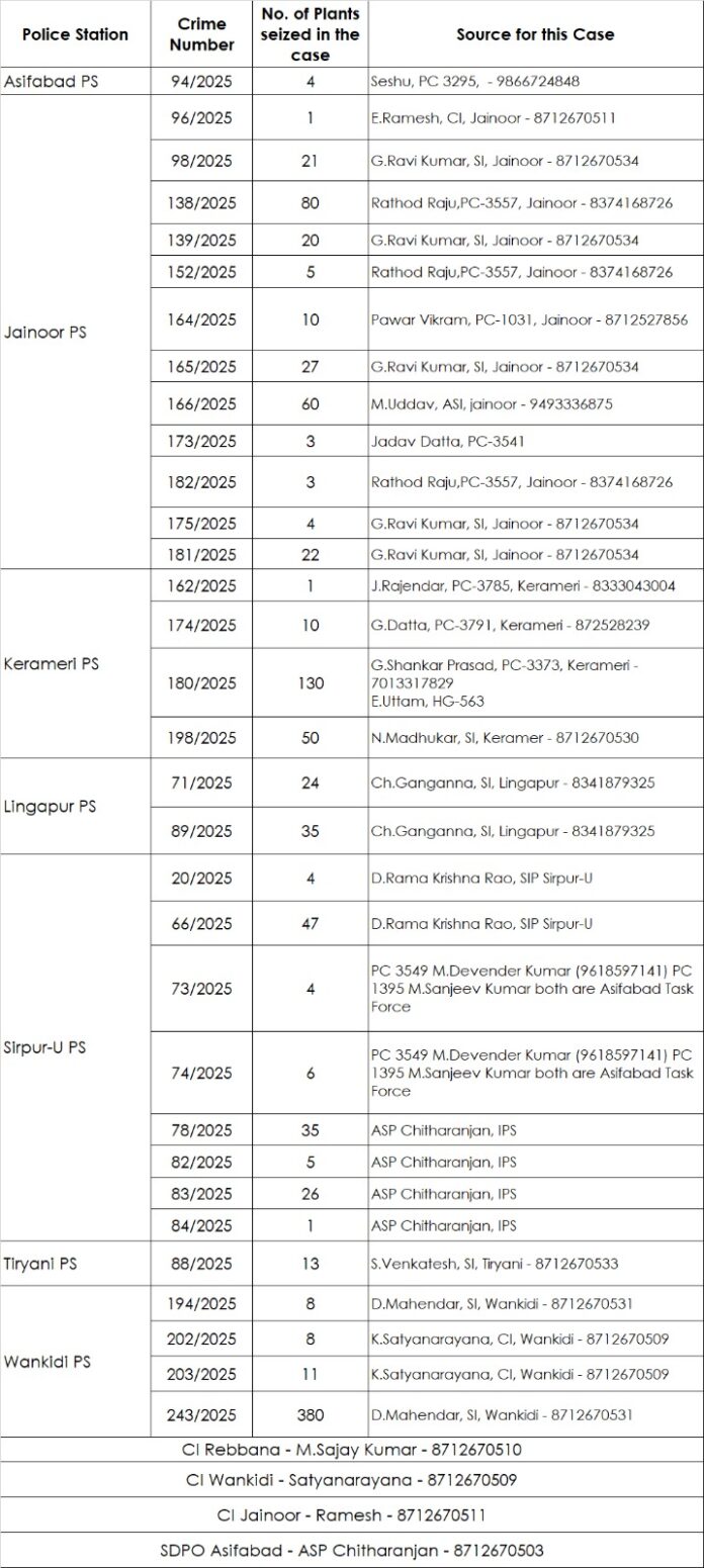 పత్రిక ప్రకటనకుంరం భీమ్ ఆసిఫాబాద్ జిల్లాతేదీ : 29-12-2025గంజాయి నిర్మూలనలో విశేష కృషి చేసిన పోలీస్ అధికారులకు నగదు రివార్డులు అందించిన జిల్లా ఎస్పీ నితిక పంత్ ఐపీఎస్నేటి సాక్షి,కుంరం భీమ్ ఆసిఫాబాద్ జిల్లా పరిధిలో 2025 సంవత్సరంలో ప్రభుత్వ నిషేధిత గంజాయి మొక్కలను గుర్తించి స్వాధీనం చేసుకోవడంలో విధుల పట్ల బాధ్యత, నిబద్ధతతో విశేష కృషి చేసిన పోలీస్ అధికారులు మరియు సిబ్బందిని జిల్లా ఎస్పీ శ్రీమతి నితిక పంత్ ఐపీఎస్ గారు ప్రత్యేకంగా అభినందించారు.ఈ సందర్భంగా ఈరోజు జిల్లా పోలీస్ కార్యాలయం నందు నిర్వహించిన కార్యక్రమంలో, గంజాయి సాగు, అక్రమ రవాణా నిరోధానికి కృషి చేసిన అధికారులకు మరియు సిబ్బందికి నగదు రివార్డులు అందించారు.ఈ కార్యక్రమంలో ఎస్పీ గారు మాట్లాడుతూ,… “సమాజానికి ముప్పుగా మారుతున్న గంజాయి వంటి మత్తు పదార్థాల నిర్మూలనలో జిల్లా పోలీస్ శాఖ అంకితభావంతో పనిచేయడం అభినందనీయం. ప్రజల భద్రతే లక్ష్యంగా పోలీసులు నిరంతరం అప్రమత్తంగా ఉండాలి” అని తెలిపారు. అలాగే రాబోయే రోజుల్లో కూడా ఇదే విధమైన అంకితభావం, చిత్తశుద్ధి, క్రమశిక్షణతో విధులు నిర్వర్తిస్తూ గంజాయి రహిత జిల్లాగా ఆసిఫాబాద్ను తీర్చిదిద్దేందుకు ప్రతి ఒక్కరూ కృషి చేయాలని ఎస్పీ గారు సూచించారు.