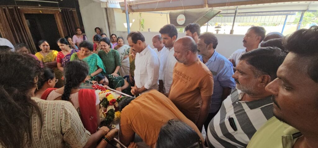 నేటి సాక్షి తిరుపతి జిల్లా (బాదూరు బాల) : రామచంద్రాపురం మండలం నెన్నూరు పంచాయతీకి చెందిన వైఎస్‌ఆర్‌ కాంగ్రెస్‌ పార్టీ సీనియర్‌ నాయకుడు ఈశ్వర్‌రెడ్డి శుక్రవారం గుండెపోటుతో ఆకస్మికంగా మృతి చెందారు. ఆ విషయం తెలుసుకున్న జిల్లా వైఎస్‌ఆర్‌ కాంగ్రెస్‌ పార్టీ అధ్యక్షులు భూమన కరుణాకర్‌ రెడ్డి గ్రామానికి చేరుకుని పూలమాల వేసి నివాళలు అర్పించారు. అనంతరం చంద్రగిరి మాజీ ఎమ్మెల్యే చెవిరెడ్డి భాస్కర్‌ రెడ్డి, ఆయన సతీమణి చెవిరెడ్డి లక్ష్మీ, చెవిరెడ్డి హర్షిత్‌ రెడ్డిలు పూల మాలవేసి నివాళులు అర్పించారు. అనంతరం ఈశ్వర్‌రెడ్డి అంత్యక్రియలు జరిగేంత వరకు అక్కడే వున్న చెవిరెడ్డి స్మశాన వాటిక వరకు పాడె మోశారు. ఆ కుటుంబ సభ్యులకు అండగా ఉంటామని ధైర్యం చెప్పారు. ఈశ్వర్‌రెడ్డి మరణం వైఎస్‌ఆర్‌ కాంగ్రెస్‌ పార్టీకి స్థానిక ప్రజలకు తీరని లోటన్నారు. రాజకీయాలకు అతీతంగా అందరికీ సేవ చేసే ఈశ్వర్‌రెడ్డి మరణించారని తెలుసుకున్న చుట్టుప్రక్కల గ్రామాల ప్రజలు తండోపతండాలుగా తరలివచ్చి ఆయన అంతిమ యాత్రలో పాల్గొన్నారు. రాఘవరెడ్డి పౌల్ట్రీ ఫామ్స్‌ అధినేతగా పరిచయమైన ఈశ్వర్‌రెడ్డి మృతికి కోళ్లపరిశ్రమకు చెందిన వ్యాపారులు సంతాపం వ్యక్తం చేశారు. రామచంద్రాపురం మండలం నుంచి పార్టీలకు అతీతంగా పలువురు నేతలు ఆయన భౌతికకాయాన్ని సందర్శించి నివాళులు అర్పించారు.