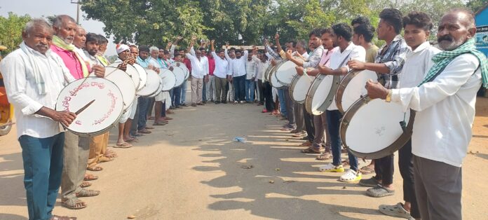 నేటి సాక్షి, ఎండపల్లి (రియాజ్): ఎస్సీ వర్గీకరణ లక్ష్యంగా ఎమ్మార్పీఎస్ వ్యవస్థాపక అధ్యక్షులు మందకృష్ణ మాదిగ ఆద్వర్యంలో ఫిబ్రవరి 07 న హైదరాబాదులో నిర్వహిస్తున్న వెయ్యి గొంతులు లక్ష డప్పులు ప్రదర్శన కార్యక్రమాన్ని విజయవంతం చేయడం కోసం శనివారం ధర్మపురి పట్టణంలో ప్రజా నాయకుడు ఏపూరి సోమన్న ముఖ్య అతిథిగా నిర్వహించిన సన్నాహక సభకు మద్దతుగా ఎండపల్లి మండల ఎమ్మార్పీఎస్ అధ్యక్షులు చేన్న కుమారస్వామి ఆధ్వర్యంలో మండలంలోని ఎండపల్లి, గుల్లకోట, కొత్తపేట, పడకల్ గ్రామాల నుండి పెద్ద ఎత్తున ఎమ్మార్పీఎస్ నాయకులు కార్యకర్తలు డప్పు చప్పుళ్ళతో బయలుదేరి వెళ్లారు. ఈ సందర్భంగా చెన్న కుమారస్వామి మాట్లాడుతూ హైదరాబాదులో నిర్వహించే కార్యక్రమానికి మండల వ్యాప్తంగా అన్ని వర్గాల ప్రజలు పెద్ద ఎత్తున తరలి ఎస్సీ ఎ.బి.సి.డి వర్గీకరణకు మద్దతుగా నిలవాలని పిలుపునిచ్చారు.