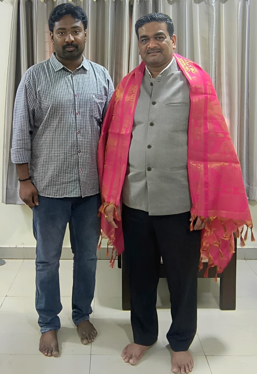 నేటి సాక్షి, తిరుపతి జిల్లా (బాదూరు బాల) : యూనివర్సిటీ గ్రాంట్స్ కమిషన్ జాయింట్ సెక్రెటరీ డాక్టర్. అమోల్ ఎం. అంధారే మర్యాదపూర్వకంగా కలిసిన ఏబిఆర్ఎస్ఎం రాష్ట్ర టెక్నికల్ ఎడ్యుకేషన్ సెక్రటరీ, శ్రీ వెంకటేశ్వర విశ్వవిద్యాలయం అధ్యాపకుడు డాక్టర్. ఎన్. బాలసుబ్రమణ్యం స్థానిక ఎస్వీ యూనివర్సిటీలో జరుగుతున్న ఇండియన్ నాలెడ్జ్ సిస్టం అనే కార్యక్రమానికి ముఖ్య అతిథిగా విచ్చేసిన నేపథ్యంలో ఎస్వియూ అతిథి గృహంలో మర్యాదపూర్వకంగా కలిసి పుష్పగుచ్చం ఇచ్చి సన్మానించారు.