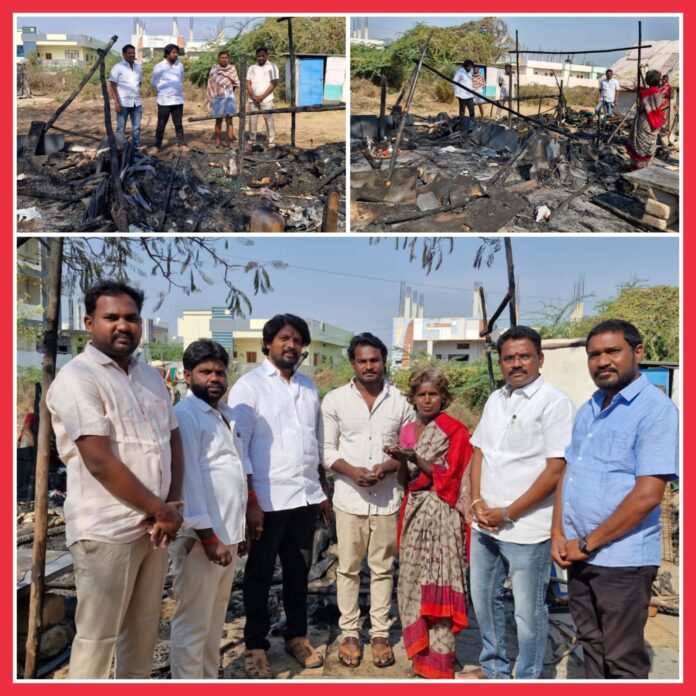 .నేటి సాక్షి ప్రతినిధి గద్వాల్ ( రమేష్ ) : జోగులాంబ గద్వాల జిల్లా అలంపూర్ తాలూకా అయిజ పట్టణం భరత్ నగర్ కాలనీ లో అనుమానాస్పదంగా (2)గుడిసెలకు నిప్పు అంటుకుని గుడిసెలు పూర్తిగా కాలి బూడిద అవ్వడంతో అక్కడ ఉంటున్నవాళ్ళు కట్టుబట్టలతో బయట పడిన సంగతి తెలుసుకొని వెళ్లి వారిని పరామర్శించారు. ఈ సందర్బంగా వారు మాట్లాడుతూ…, వీరు ప్రతి సంవత్సరం లాగే ఈ సంవత్సరం కూడ అయిజ శ్రీశ్రీశ్రీ తిక్క వీరేశ్వర స్వామి బ్రహ్మోత్సవాలకు గాజులు అమ్ముకునేందుకు ఇక్కడకు వచ్చి ఇక్కడే గుడిసెలు వేసుకుని జీవనం కొనసాగిస్తున్నారు. రాత్రికి రాత్రే గుడిసెలకు నిప్పంటుకోవడంతో గాజులు, బట్టలు, డబ్బులు, అన్ని కాలి బూడిద అవ్వడంతో వారు దిక్కుతోచని స్థితిలో ఉండటంతో విషయం తెలుసుకున్న కాంగ్రెస్ పార్టీ జిల్లా లీగల్ సెల్ అధ్యక్షులు సురేష్ గౌడ్, టీపీసీసీ అధికార ప్రతినిధి మాస్టర్ శెక్షావలి ఆచార, ఐజ పట్టణ కాంగ్రెస్ పార్టీ అధ్యక్షులు మాస్టర్ మధుకుమారులు అక్కడకు చేరుకొని వారిని పరామర్శించి 5 వేల రూపాయల నగదు, ఒక బస్తా బియ్యం అందించటం జరిగింది. ఈ కార్యక్రమంలో ఫిరోజ్, రఘు గౌడ్, అశ్వ మారెప్ప, తదితరులు పాల్గొన్నారు.