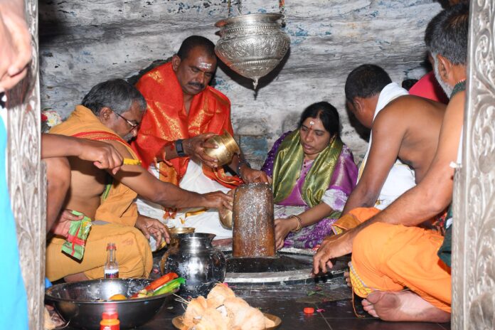 నేటి సాక్షి, ప్రతినిధి వనపర్తి జిల్లా : శ్రీశైల క్షేత్రం ఉత్తర ద్వార సన్నిధి ఉమామహేశ్వర సన్నిధిలో శివరాత్రి పర్వదినాన్ని పురస్కరించుకొని గత 21 సంవత్సరాలుగా శివమాల ధారణ చేసి పాదయాత్ర చేసే స్వాములకు అన్నదాన కార్యక్రమం నిర్వహిస్తూ వస్తున్నారూ వనపర్తి శాసనసభ్యులు తూడి మేఘారెడ్డి.ఈ సందర్భంగా శుక్రవారం ఎమ్మెల్యే దంపతులు ఉమామహేశ్వరుడికి ప్రత్యేక పూజలు చేశారు.క్షీరాభిషేకం, జలాభిషేకం, పుష్ప అభిషేకాలు నిర్వహించారు. అన్నప్రసాదాన్ని తీసుకువచ్చి స్వామివారికి నైవేద్యంగా సమర్పించారు. అమ్మవారికి కుంకుమార్చన చేశారు.