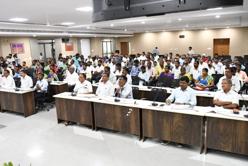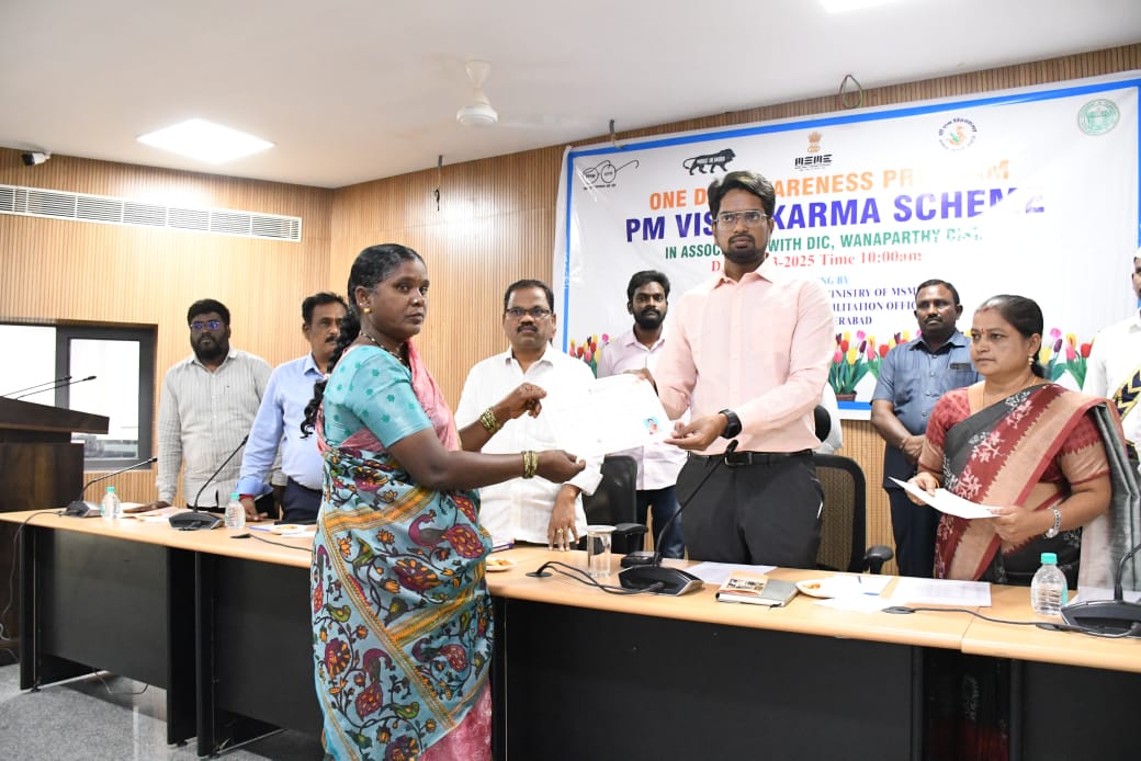 నేటి సాక్షి ప్రతినిధి వనపర్తి జిల్లా : జిల్లాలోని అన్ని మండలాలు, మున్సిపాలిటీల పరిధిలో పెండింగ్ లో ఉన్న పీఎం విశ్వకర్మ పథకానికి సంబంధించిన దరఖాస్తులను వీలైనంత త్వరగా పరిష్కరించాలని జిల్లా కలెక్టర్ ఆదర్శ్ సురభి ఆదేశించారు. శుక్రవారం జిల్లా కలెక్టరేట్లోని సమావేశ మందిరంలో వివిధ కులవృత్తులకు సంబంధించి పీఎం విశ్వకర్మ కింద ఎంపికై శిక్షణ తీసుకున్న లబ్ధిదారులకు అవగాహన సమావేశం నిర్వహించారు. అనంతరం వారికి ధ్రువపత్రాలను పంపిణీ చేశారు. కలెక్టర్ మాట్లాడుతూ పీఎం విశ్వకర్మ పథకాన్ని వృత్తిదారులు సద్వినియోగం చేసుకోవాలని సూచించారు. పీఎం విశ్వకర్మ పథకం కింద చేతివృత్తుల వారికి శిక్షణ ఇచ్చిన సింక్రోస్ సర్వ్ ఏజెన్సీకి కలెక్టర్ అభినందనలు తెలిపారు. శిక్షణ తీసుకున్న వారంతా సద్వినియోగం చేసుకోవాలని చెప్పారు. జిల్లాలోని అన్ని మండలాల్లో, మున్సిపాలిటీల్లో, పెండింగ్ లో ఉన్న పీఎం విశ్వకర్మ అప్లికేషన్లను వీలైనంత త్వరగా పరిష్కరించాలని జిల్లా కలెక్టర్ ఎంపీడీవోలు మున్సిపల్ కమిషనర్లకు ఆదేశించారు.ధ్రువపత్రాలు అందుకున్న వారిలో 37 మంది కుమ్మరి చేతి వృత్తుల వారు, 33 మంది శిల్పి శిక్షణ పొందిన వారు, మరికొందరు ఇతర చేతివృత్తుల్లో శిక్షణ పొందిన వారు ఉన్నారు. ఈ సందర్భంగా ఎంఎస్ఎమ్ఈ ఏడి శివరాం ప్రసాద్ జిల్లా కలెక్టర్ ఆదర్శ్ సురభిని, అదనపు కలెక్టర్ స్థానిక సంస్థలు యాదయ్య ను శాలువాతో సన్మానించారు. సమావేశంలో అదనపు కలెక్టర్ స్థానిక సంస్థలు యాదయ్య, ఎం ఎస్ ఎం ఈ ఎడి శివరాం ప్రసాద్, పరిశ్రమల శాఖ జీఎం జ్యోతి, బిజీ సంక్షేమ అధికారి ఇందిరా, పరిశ్రమల శాఖ అధికారి నాగేష్, ఎల్ డి ఎం కౌశల్ కిషోర్ పాండే, అసిస్టెంట్ ఎల్ డి ఎం సాయి, ఇతర అధికారులు తదితరులు పాల్గొన్నారు.