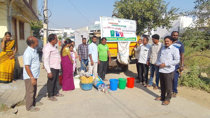 నేటి సాక్షి, మెట్ పల్లి : పట్టణంలోని పదవ వార్డ్ లోని ప్రజలకు సోమవారం తడి చెత్త, పొడి చెత్త, హానికరమైన చెత్త పై కమిషనర్ మోహన్ అవగాహనా కల్పించారు. ఈ సందర్బంగా కమిషనర్ మాట్లాడుతూ తడి చెత్త పొడి చెత్త హానికరమైన చెత్త గురించి ప్రజలకు అవగాహన కల్పిస్తూ చెత్తను వేరు చేసి మున్సిపల్ వాహనాలకు అందివ్వాలని,ఇంట్లో నుండి వచ్చే తడి చెత్త ద్వారా సేంద్రియ ఎరువు తయారుచేసి పట్టణంలోని మొక్కలకు వేయడం జరుగుతుందని తెలిపారు. ఇంట్లో నుంచి వచ్చే పొడి చెత్తను పొడి వనరుల సేకరణ కేంద్రానికి తరలించడం జరుగుతుందని అన్నారు. పారిశుధ్యం పరిశుభ్రత స్వచ్ఛత కోసం మా సిబ్బంది నిరంతరం కృషి చేస్తున్నారు. క్షేత్రస్థాయిలో ఏమైనా సమస్యలు ఉంటే ఎప్పటికప్పుడు పరిష్కరిస్తున్నాము అని అన్నారు. పురపాలిక ద్వారా మేము అందిస్తున్న సేవలపై ప్రజల అభిప్రాయాన్ని తెలుసుకునేందుకు స్వచ్ఛ సర్వేక్షన్ 2024 సర్వే ప్రారంభమైంది, ప్రజలందరూ మెట్ పల్లి మున్సిపాలిటీ చేసే పారిశుద్ధ్య పనులను ఫీడ్ బ్యాక్ అనగా మీ మొబైల్ ఫోన్ నుండి క్యూఆర్ కోడ్ ఉపయోగించి అభిప్రాయము తెలియజేయలని కోరారు. ఈ కార్యక్రమంలో ఇన్చార్జ్ సానిటరీ ఇన్స్పెక్టర్ రత్నాకర్, ఎన్విరాన్మెంట్ ఇంజనీర్ విష్ణు,ముజీబ్, నిజాం, అశోక్, నర్సయ్య పట్టణ ప్రజలు పాల్గొన్నారు.