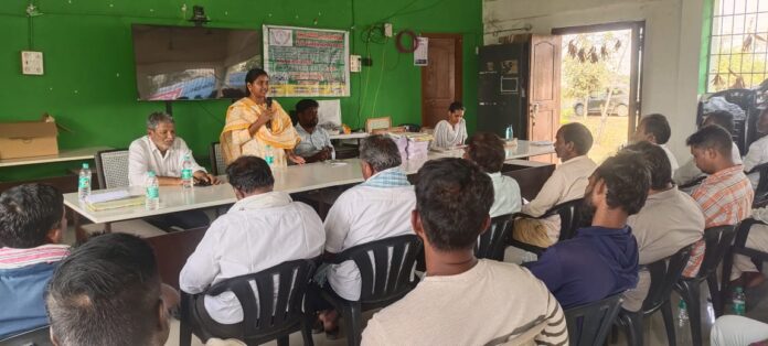నేటిసాక్షి/మంగపేట : మండల కేంద్రంలోని రైతువేదికలో హార్టికల్చర్ మరియు కెన్ బయోసైన్స్ కంపెనీ ప్రతినిధులచే మండలంలోని పామాయిల్ రైతులకు అవగాహన సదస్సు నిర్వహించడం జరిగింది. ముఖ్యఅతిథిగా హార్టికల్చర్ అధికారి కొప్పిరి లావణ్య హాజరువగా మండలంలోని పామాయిల్ రైతులు అధిక సంఖ్యలో సమావేశానికి హాజరయ్యారు ఆర్థికల్చర్ అధికారి లావణ్య మాట్లాడుతూ రైతులు మొక్కకి కావలసిన పోషకాలు అందించడంతోపాటు సరిపడినంత నీరు అందించాలన్నారు.మంగపేట లో రైతులు పామ్ ఆయిల్ సాగు వైపు అడుగులేయడం అభినందనీయమని అధిక శ్రమ, అధిక పెట్టుబడి, ఎక్కువ మంది లేబర్ తో పనిలేని క్రాప్ పామాయిల్ అన్నారు.ప్రభుత్వం సబ్సిడీ అందిస్తున్నందున నియోగపర్చుకొవలన్నారు. కంపెనీ ప్రతినిధి ఏరియా ఇంచార్జి శివకృష్ణ మాట్లాడుతూ వస్తున్న వేసవిని దృష్టిలో పెట్టుకొని సాగులో పాటించవలసిన మెలకువలను తెలిపారు. మూడు సంవత్సరాలు నిండిన తోటలో వివల్స్ వదలాల్సి ఉండగా ఉష్ణోగ్రత అధికంగా ఉన్నందున జూన్ నాటికి సమయం పొడిగించడం జరుగుతుందని రైతులకు వివరించారు. అనంతరం మండలంలోని కొనుగోలు కేంద్రం ఏర్పాటుకు ప్రయత్నాలు జరుగుతున్నాయని త్వరలోనే వెల్లడిస్తామన్నారు. భవిష్యత్తులో ఎక్కువ ప్లాంటేషన్ జరిగితే మరిన్ని కొనుగోలు కేంద్రాల ఏర్పాటు కూడా అవకాశం ఉందన్నారు.రైతులు పండించిన పామాయిల్ గెలలను ఒక్కటి కూడా వదలకుండా ప్రభుత్వం ప్రకటించిన గిట్టుబాటు ధరకు కె ఎన్ బయోసైన్స్ ధ్వారా తామే కొనుగోలు చేస్తామని రైతులకు భరోసాని ఇచ్చారు. రైతులు పండించిన పంటను కేవలం కొనుగోలు కేంద్రం వరకు తరలిస్తే సరిపోతుందన్నారు. త్వరలో ములుగు జిల్లాలోనే ఫ్యాక్టరీ ఏర్పాటు కానుందన్నారు. ఆయిల్ ఫామ్ రైతుకు మంచి లాభదాయకమైన పంటని మరింత మంది రైతులు ఈ దిశగా పయణించాలని కోరారు. కంపెనీ ప్రతినిధి మాట్లాడుతూ ముందస్తుగా వచ్చిన గెలలను తొలగించడం ధ్వారా మొక్క ఎదుగుదల ఉంటుందన్నారు అనంతరం వచ్చే గెలలో ఆయిల్ శాతం ఉంటుందని ముందస్తు గెలలను తొలగించి రైతులు పంట దిగుబడిని అధికంచేసుకునేలా ఆలోచించాలన్నారు కొందరు రైతులు తమ అనుమానాలపై సమాధానం రావడంతో ఈ విధంగా సమావేశం ఏర్పాటు చేయడం ఆనందంగా ఉందని పలు ప్రశ్నలకు సమాధానం లభించిందని సంతృప్తి వ్యక్తంచేశారు. ఈ కార్యక్రమం లో కంపెనీ ప్రతినిధులు సాంబశివరావు,అఖిల్, వ్యవసాయ విస్తరణ అధికారి గాయత్రి రైతులు పాల్గొన్నారు.