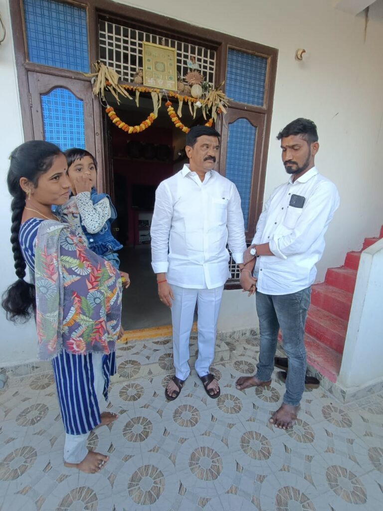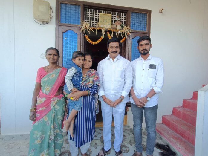 నేటి సాక్షి ప్రతినిధి, రుద్రంగి : రుద్రంగి మండలం మానాల గ్రామంలో రిటైర్డ్ ఉద్యోగి మాలోత్ నరహరి నాయక్ ఉద్యోగ విరమణ సందర్భంగా మానాల గ్రామానికి వచ్చిన మాజీ మంత్రి, ఎమ్మెల్యే వేముల ప్రశాంత్ రెడ్డి తిరుగు ప్రయాణంలో గ్రామానికి చెందిన బిఆర్ యస్ పార్టీ యువ కార్యకర్త పిసరి రవీందర్ స్వగృానికి వెళ్లి కార్యకర్త బాగోగులు తెలుసుకున్నారు. నా గెలుపుకోసం చాలా కష్టపడ్డావు బిడ్డ.. నిన్ను గుండెల్లో పెట్టుకొని చూసుకుంటా అంటూ మాజీ మంత్రి, వేముల ప్రశాంత్ రెడ్డి పలకరించారు. రవీందర్ కుటుంబం సభ్యులతో ఆప్యాయంగా ఫోటో దిగారు. నువ్వు కూడా రానున్న రోజుల్లో మంచి నాయకుడిగా ఎదగాలని అన్నారు. ఎటువంటి ఇబ్బందులు వున్నా నేను నీకు ఉన్నా బిడ్డ అని భరోసా ఇచ్చి, ధైర్యం చెప్పి వెళ్లారు.