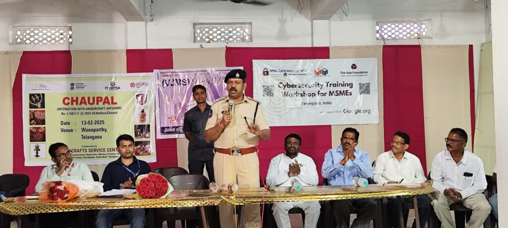 నేటి సాక్షి ప్రతినిధి వనపర్తి జిల్లా : హైడ్ క్రాఫ్ట్ ఏదైతే చేతివృత్తుల వారి నైపుణ్య అయినా హ్యాండ్ క్రాఫ్ట్ హైదరాబాద్ మరియు వనపర్తి జిల్లా స్వర్ణకారుల సంఘం ఆధ్వర్యంలో స్వర్ణకారులకు సైబర్ నేరాల అవగాహన కార్యక్రమం గురువారం రోజు వనపర్తి జిల్లా కేంద్రంలోని బ్రహ్మంగారి గుడిలో సైబర్ క్రైమ్ అవగాహన కార్యక్రమం నిర్వహించారు. సైబర్ నేరాల అవగాహన కార్యక్రమానికి వనపర్తి జిల్లా ఎస్పీ రావుల గిరిధర్ ఐపీఎస్ ముఖ్యఅతిథిగా హాజరయ్యారు.ఈ సందర్భంగా ఎస్పీ మాట్లాడుతూ సైబర్ నేరాల పట్ల స్వర్ణకారుల ప్రభుత్వంగా ఉండాలని ఎస్పీ అన్నారు. సైబర్ నేరాల బారిన పడకుండా బ్యాంకు, ఆన్లైన్ మోసాలు, సోషల్ మీడియా, ఫేస్బుక్, ఫోన్ కాల్స్, వాట్సాప్, లింకులు పట్ల జాగ్రత్తగా ఉండాలని వారు సూచించారు సాంకేతిక పరిజ్ఞానాన్ని దుర్వినియోగం చేస్తూ వ్యక్తిగత సమాచారం తో సైబర్ నేరగాళ్లు నేరాలకు పాల్పడుతున్నారని అటువంటి వారి పట్ల జాగ్రత్తగా ఉండాలని వారు అన్నారు వ్యక్తిగత సమాచారం చోరీ చేయడం నష్టాలు కలిగించడం వంటి సంఘటనలు ఎక్కువగా జరుగుతున్నాయని పరిజ్ఞానాన్ని దుర్వినియోగం చేయకుండా తగు జాగ్రత్తలు తీసుకోవాలని వారు అన్నారు అంతేకాక రోజువారి వాడే మొబైల్స్ లో ల్యాప్టాప్ల ద్వారా మన డేటాని హ్యాక్ చేసి పలు రకాల ఇబ్బందులకు గురి చేస్తున్నారని వారు తెలిపారు. సైబర్ నేరాల పట్ల అవగాహన కలిగి ఉండటానికి డైజేషన్ ఫౌండేషన్, గూగుల్ సహకారంతో అవగాహన కార్యక్రమాలు నిర్వహించాలని ఎస్పీ తెలిపారు. ఈ కార్యక్రమంలో మార్కెట్ కమిటీ చైర్మన్ శ్రీనివాస్ గౌడ్, మాజీ మున్సిపల్ వార్డు కౌన్సిలర్ బ్రహ్మచారి, వనిత జ్యోతి, అధ్యక్షురాలు ఏకే ఖమర్, రహమాన్స్వర్ణకార సంఘాల ప్రతినిధులు మరియు స్వర్ణకారులు పాల్గొన్నారు.
