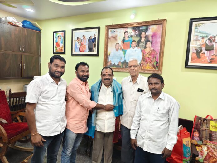నేటి సాక్షి, మందమర్రి:– భారతీయ జనతా పార్టీ నూతన జిల్లా అధ్యక్షునిగా ఎన్నికైన నగునూరి వెంకటేశ్వర్ గౌడ్ ను బిజెపి మండల, పట్టణ నాయకులు మంగళవారం జిల్లాలోని చెన్నూరు పట్టణంలో గల ఆయన స్వగృహంలో మర్యాదపూర్వకంగా కలిసి, శుభాకాంక్షలు తెలిపి, శాలువాతో ఘనంగా సన్మానించారు. ఈ సందర్భంగా బిజెపి మండల అధ్యక్షుడు గిర్నేని జనార్ధన్ మాట్లాడుతూ, వెంకటేశ్వర గౌడ్ నాయకత్వంలో జిల్లాలో పార్టీ మరింత బలోపేతం అవుతుందని ఆశాభావం వ్యక్తం చేశారు. ఈ కార్యక్రమంలో బిజెపి నాయకులు దేవరనేని సంజీవరావు, డివి దీక్షితులు లు పాల్గొన్నారు.