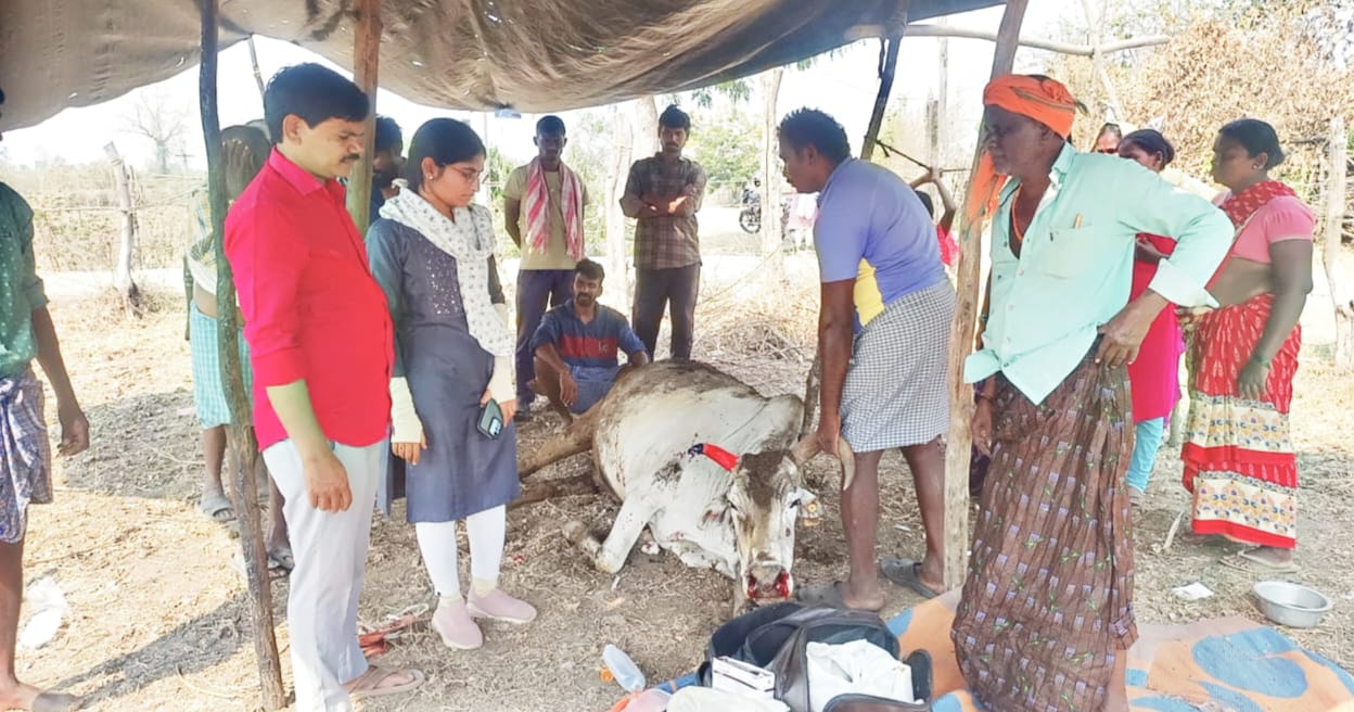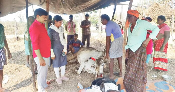 నేటి సాక్షి,వేమనపల్లి : మండలంలోని బొమ్మెన గ్రామంలో దాగామ లక్ష్మణ్ కు చెందిన వరి గడ్డికి ప్రమాదశత్తు నిప్పు అంటుకొగా పక్కన కట్టేసి ఉన్న 3 ఎద్దులు అగ్నిప్రమాదంలో తీవ్రంగా గాయలయ్యాయి. దీంతో బాధితుడు పశు వైద్యులకు సమాచారం అందించగా వెంటనే మండల పశువైద్యులు డా.సుప్రియ,డా.పవన్ కుమార్ అక్కడికి చేరుకొని పశువులకు చికిత్స చేశారు.వీరితో పశు వైద్య సిబ్బంది అస్లాం,గోపాల మిత్ర శ్రీకాంత్ ఉన్నారు.