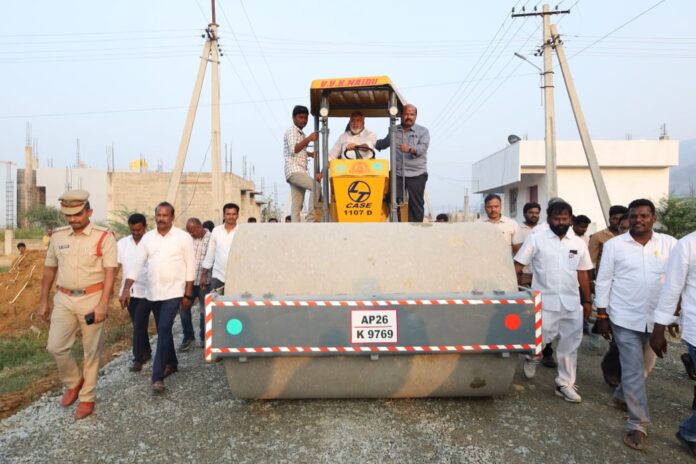 నేటి సాక్షి, తిరుపతి జిల్లా (బాదూరు బాల) : చంద్రగిరి మండలం తొండవాడ ఎన్టీఆర్ కాలనీలో అభివృద్ది పనులకు భూమి పూజ చేసి శిలాఫలకాన్ని జిల్లా కలెక్టర్ కలెక్టర్ వెంకటేశ్వర్ తో కలిసి ఎమ్మెల్యే పులివర్తి నాని శిలాఫలకాన్ని ఆవిష్కరించారు. అనంతరం ఎమ్మెల్యే మాట్లాడుతూ తొండవాడ ఎన్టీఆర్ నగర్ కాలనీలో సుమారు 35 వివిధ రకాల అభివృద్ధి కార్యక్రమాలకు గాను 12కోట్ల 82 లక్షల రూపాయలతో అభివృద్ది పనులకు శ్రీకారం చుట్టారు. సీసీ రోడ్డు పనులకు భూమి పూజ చేసిన అనంతరం రోడ్డు రోలర్ వాహనాన్ని నడిపి పనులను ఎమ్మెల్యే ప్రారంభించారు ఎన్టీఆర్ కాలనీలో నూతనంగా నిర్మిస్తున్న కల్వర్టు పనులను అధికారులతో కలిసి ఎమ్మెల్యే పులివర్తి నాని పరిశీలించి త్వరితగతిన పూర్తి చేయాలని కోరారు. ప్రజా పాలన ఎలా ఉంటుందో చేసి చూపుతా. ఎమ్మెల్యే పులివర్తి నాని ఎన్టీఆర్ కాలనీని అభివృద్ధి పథంలో తీసుకెళ్లే బాధ్యత నేను తీసుకుంటామని స్థానికులకు ఆయన హామీ ఇచ్చారు ఉమ్మడి కూటమి ప్రభుత్వం అధికారంలోకి వచ్చిన వెంటనే అభివృద్ధి పథంలో ముందుకు వెళ్తున్నట్లు తెలిపారు.. గత వైసిపి ప్రభుత్వం మాదిరిగా ఏదో మాటలు చెప్పి, కాలయాపన చేసే ప్రభుత్వం కాదు మా కూటమి ప్రభుత్వం .మాది చేతల ప్రభుత్వము న్నారు జిల్లా కలెక్టర్ వెంకటేశ్వర్లు మాట్లాడుతూ తొండవాడ ఎన్టీఆర్ కాలనీలో 12 కోట్ల 82 లక్షల రూపాయలె కాదు ఇంకా అభివృద్ధికి సహకరిస్తామని అన్నారు అలాగే తొండవాడ ఎన్టీఆర్ కాలనీకి ఎన్టీఆర్ పంచాయతీగా పేరు పెట్టాలి,అంగన్వాడీ భవనం మరియు ప్రైమరీ స్కూల్ ఏర్పాటు చేయాలని జిల్లా కలెక్టర్ వెంకటేశ్వర్ ను ఎమ్మెల్యే కోరారు సానుకూలంగా స్పందించిన కలెక్టర్ త్వరలోనే అంగన్వాడి భవనం నిర్మాణం చేపట్టాలి అధికారులకు ఆదేశాలు జారీ చేసిన జిల్లా కలెక్టర్ వెంకటేశ్వర్.తొండవాడ ఎన్టీఆర్ హౌసింగ్ కాలనీలో సోలార్ విద్యుత్ ఏర్పాటుపై ప్రజలకు అవగాహన కల్పించాలని విద్యుత్ శాఖ అధికారులకు కలెక్టర్ ఆదేశాలు జారీ ఎన్టీఆర్ కాలనీని అన్ని విధాలుగా అభివృద్ధి పథంలో తీసుకు వెళ్తామని ప్రకటించారు. ఈ కార్యక్రమంలో మండల పార్టీ అధ్యక్షుడు సుబ్రహ్మణ్యం నాయుడు, టిడిపి సీనియర్ నాయకులు రమేష్ రెడ్డి, కుమార్ రాజా రెడ్డి, గౌస్ భాషా, ఆకుల ప్రభాకర్ నాయుడు, మాజీ సింగిల్ విండో చైర్మన్ మల్లం చంద్రమౌళి రెడ్డి,యల్లప్పరెడ్డి,హరి, తులసీశ్వర్ రెడ్డి, బాలకృష్ణ మూర్తి నాయుడు, వినోద్ కుమార్ రెడ్డి, మోహన్ రెడ్డి (బుజ్జి రెడ్డి) ప్రవీణ్ రాయలు, జనసేన నాయకులు తపసి మురళి రెడ్డి, జిల్లా స్థాయి అధికారులు, కూటమి ప్రభుత్వం నాయకులు, కార్యకర్తలు పాల్గొన్నారు.