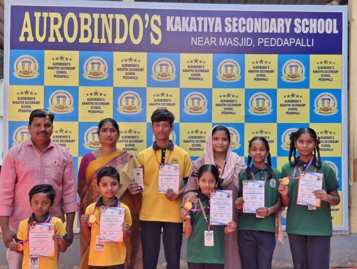 నేటి సాక్షి,పెద్దపల్లి (వోడ్నాల తిరుపతి) : పెద్దపల్లి పట్టణంలోని స్థానిక శ్రీ అరబిందో కాకతీయ సెకండరీ పాఠశాల పెద్దపల్లి లో ఇటీవల వివిధ తరగతుల విద్యార్థులకు నిర్వహించినటువంటి ఇండియన్ ఒలంపియాడ్ స్టేట్ లెవెల్ ఎగ్జామ్స్ లో అత్యుత్తమ ప్రతిభ కనబరిచిన విద్యార్థినీ విద్యార్థులను పాఠశాల ఉపాధ్యాయ బృందం ప్రశంస పత్రాలు, మెడల్స్ తో సత్కరించడం జరిగింది. ఈ పోటీ పరీక్షలలో ప్రతిభ కనబరిచి మెరిట్ సాధించిన విద్యార్థిని విద్యార్థులను సెకండ్ లెవెల్ కు సెలెక్ట్ అయినందుకు గాను పాఠశాల ప్రధానోపాధ్యాయులు సుధాకర్ ప్రత్యేక అభినందనలు తెలిపారు. పాఠశాల స్థాయి నుండి వివిధ పోటీ పరీక్షలకు అర్హత సాధించేటట్లుగా మా శ్రీ అరబిందో కాకతీయ పాఠశాల విద్యార్థిని విద్యార్థులను తీర్చిదిద్దడం మా పాఠశాల ప్రత్యేకత అని తెలిపారు.సెకండ్ లెవెల్ కు అర్హత సాధించిన రూపాలి 3వ తరగతి,శశి కుమార్ 3వ తరగతి, సంజు శ్రీ 8వ తరగతి, నాగశ్రీ సన్నిద్ 9వ తరగతి, హాసిని 10 వ తరగతి విద్యార్థులను పాఠశాల కరస్పాండెంట్ ఆర్.వి. రమణారావు ప్రత్యేక అభినందనలు తెలిపారు ఇందుకు సహకరించినటువంటి పాఠశాల అధ్యాపక బృందాన్ని అభినందించారు. ఈ కార్యక్రమంలో విద్యార్థిని విద్యార్థులతో పాటు డైరెక్టర్ మణి, ఇన్ చార్జ్ ఇమ్రాన సుల్తానా,ఆధ్యాపక బృందం పాల్గొన్నారు.