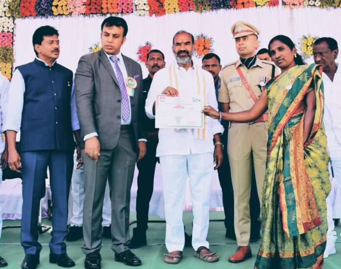 నేటి సాక్షి,కరీంనగర్ జిల్లా : చందుర్తి మండలం లోని తాహసిల్దార్ కార్యాలయంలో డిప్యూటీ తహసీల్దారుగా విధులు నిర్వహిస్తున్న కే శ్రీలతకు ఆదివారం 26 గణతంత్ర దినోత్సవం రోజున పోలీస్ పరేడ్ గ్రౌండ్లో నిర్వహించిన వేడుకల్లో ప్రభుత్వ విప్ ఆది శ్రీనివాస్, కలెక్టర్ సందీప్ కుమార్ ఝా, ఎస్పీ అఖిల్ మహజాన్ చేతుల మీదుగా ఉత్తమ సేవా అవార్డు ప్రశంస పత్రం అందుకున్నారు ఈ స్ఫూర్తితో మరింత సేవ చేయాలని సూచించారు.