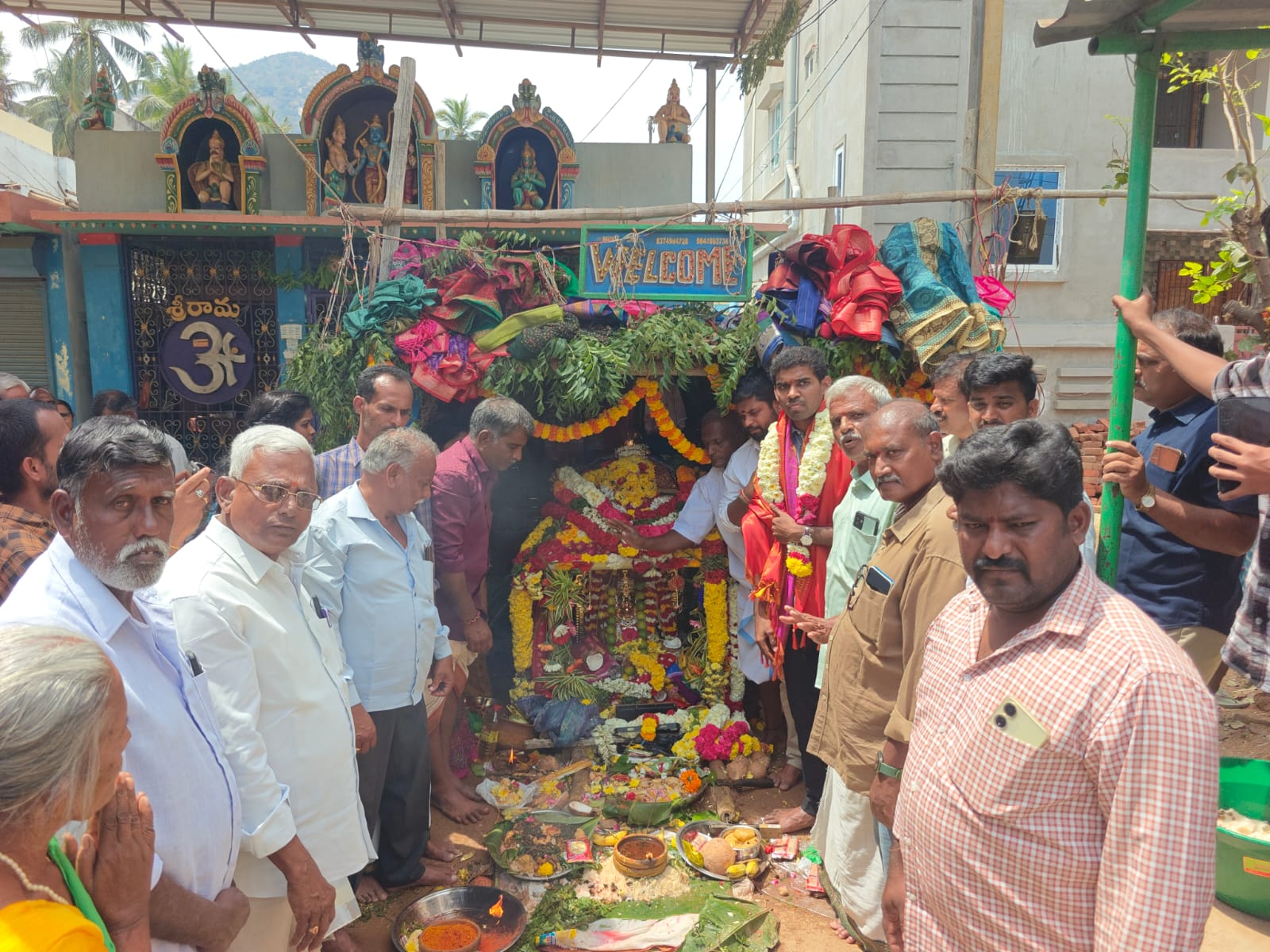 నేటి సాక్షి తిరుపతి జిల్లా (బాదూరు బాల) : చంద్రగిరి మండలం దోర్నకంబాల గ్రామంలో బుధవారం జరిగిన గంగమ్మ జాతీరలో చంద్రగిరి మాజీ ఎమ్మెల్యే చెవిరెడ్డి భాస్కర్ రెడ్డి సతీమణి చెవిరెడ్డి లక్ష్మీ, కుమారుడు చెవిరెడ్డి హర్షిత్ రెడ్డిలు పాల్గొన్నారు. ముందుగా నడవీధి గంగమ్మకు హర్షిత్ రెడ్డి అమ్మవారికి సారె సమర్పణ చేయగా గ్రామస్తులు సాదర స్వాగతం పలికారు. ఆ తరువాత అమ్మవారి దర్శనం చేయించారు. ఆ తరువాత గ్రామానికి చేరుకున్న చెవిరెడ్డి లక్ష్మీకి గ్రామస్తులు స్వాగతం పలికి అమ్మవారి దర్శనం చేయించారు. అనంతరం పుసుపు, కుంకుమలను ప్రసాదంగా అందించారు. ఈ కార్యక్రమంలో గ్రామ పెద్దలు, వైసీపీ నాయకులు పాల్గొన్నారు.