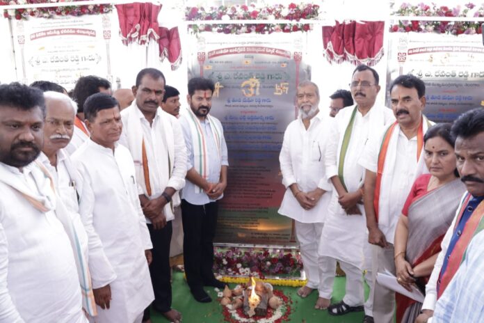 నేటి సాక్షి ప్రతినిధి వనపర్తి జిల్లా : ఆదివారం వనపర్తి జిల్లా కేంద్రంలోని ప్రభుత్వ జూనియర్ కళాశాల ఆవరణలో వివిధ అభివృద్ధి పనులకు ఏర్పాటు చేసిన శిలాఫలకాలకు ముఖ్యమంత్రి ఎనుముల రేవంత్ రెడ్డి శంకుస్థాపనలు చేశారు. పంచాయతీరాజ్ శాఖ ఆధ్వర్యంలో వనపర్తి జిల్లా కేంద్రం మరియు మండలములలో రూ. 40 కోట్లతో బీటీ రోడ్ల నిర్మాణ పనులకు, నూతన ప్రభుత్వ ఆసుపత్రి భవన నిర్మాణానికి రూ. 510 కోట్లు, నూతన ఐటీ టవర్ భవన నిర్మాణానికి 22 కోట్లు, జిల్లా పరిషత్ ఉన్నత పాఠశాల మరియు ప్రభుత్వ జూనియర్ కళాశాల భవన నిర్మాణాలకు రూ. 47.50 కోట్లు, యంగ్ ఇండియా ఇంటిగ్రేటెడ్ రెసిడెన్షియల్ పాఠశాల నిర్మాణానికి రూ.200 కోట్లు, 30 పడకల ఆస్పత్రి భావనము (పెబ్బేర్) నిర్మాణపు పనులకు రూ. 11.20 కోట్లు, శ్రీరంగాపూర్ ఆలయానికి పర్యాటకంగా అభివృద్ధి పరిచేందుకు 1.5 కోట్లు, రూ. 35 కోట్ల వ్యయంతో సి.ఆర్.ఆర్. రోడ్ల పనులు, వనపర్తి నియోజకవర్గంలో గిరిజన ఆవాసాల అభివృద్ధి పనులకు రూ. 12.60 కోట్ల రూపాయల వ్యయంతో చేపట్టనున్న పనులకు ముఖ్య మంత్రి శంకుస్థాపనలు చేశారు. దీనితోపాటు కాసిం నగర్ లిఫ్ట్ ఇరిగేషన్ స్కీం సమగ్ర సర్వే పనులకు కూడా శంకుస్థాపన చేశారు. ఈ కార్యక్రమంలో నాగర్ కర్నూల్ పార్లమెంటు సభ్యులు మల్లు రవి, జిల్లా ఇన్చార్జి మరియు వైద్య ఆరోగ్య శాఖ మంత్రి దామోదర రాజనర్సింహ, ఎక్సైజ్ మరియు పర్యాటక శాఖ మంత్రి జూపల్లి కృష్ణారావు, వనపర్తి శాసన సభ్యులు తుడి మేఘారెడ్డి, రాష్ట్ర ప్రణాళిక సంఘం వైస్ చైర్మన్ జిల్లెల చిన్నారెడ్డి, చీఫ్ సెక్రటరీ శాంతి కుమారి, వివిధ శాఖల రాష్ట్రస్థాయి ఉన్నతాధికారులు, జిల్లా కలెక్టర్ ఆదర్శ్ సురభి తదితరులు పాల్గొన్నారు.