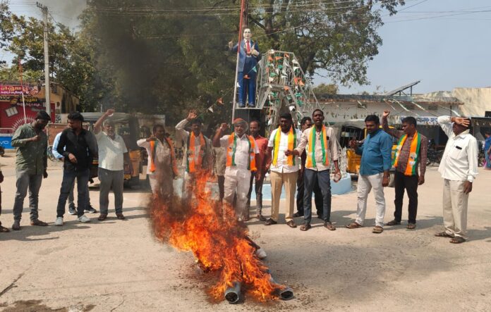 నేటి సాక్షి, బెజ్జంకి: కేంద్ర హోంశాఖ సహాయ మంత్రి, కరీంనగర్ పార్లమెంట్ సభ్యులు బండి సంజయ్ కుమార్ గద్దర్కు పద్మశ్రీ అవార్డు ఇవ్వడంపై తన అభ్యంతరాలను స్పష్టంగా వెల్లడించారు. దీనిపై కాంగ్రెస్ నాయకులు బండి సంజయ్ను హేళన చేయడాన్ని ఖండిస్తూ, బుధవారం బీజేపీ మండల శాఖ ఆధ్వర్యంలో ముఖ్యమంత్రి రేవంత్ రెడ్డి దిష్టిబొమ్మను దహనం చేశారు. ఈ సందర్భంగా బీజేపీ మండల అధ్యక్షులు కొలిపాక రాజు మాట్లాడుతూ, కార్పొరేటర్ స్థాయి నుండి కేంద్ర మంత్రిగా ఎదిగిన బండి సంజయ్ గారిని విమర్శిస్తే సహించేది లేదని హెచ్చరించారు. గద్దర్పై దేశద్రోహం కేసు పెట్టింది కాంగ్రెస్ అని, కానీ ఇప్పుడు అతన్ని సమర్థిస్తున్నట్లు నటిస్తున్నారని మండిపడ్డారు. బండి సంజయ్ గారు తన పార్లమెంట్ పరిధిలోని అన్ని నియోజకవర్గాలను అభివృద్ధి చేస్తూ, ప్రజలకు అందుబాటులో ఉంటారని అన్నారు. ఆకాశంపై ఉమ్మేస్తే తిరిగి మీపైనే పడుతుందనే విషయం కాంగ్రెస్ నాయకులు గుర్తుపెట్టుకోవాలన్నారు. గద్దర్ కారణంగా ఏబీవీపీ, బీజేపీ కార్యకర్తలు ఎందరో అమరులయ్యారని అటువంటి వ్యక్తికి పద్మశ్రీ ఇవ్వడం తగదని తెలిపారు. మందకృష్ణ మాదిగకు పద్మశ్రీ ఇవ్వడం జీర్ణించుకోలేకే కాంగ్రెస్ ఇలా చేస్తోందని విమర్శించారు. దళితులందరూ బీజేపీ పక్షాన ఉన్నారు, దళితుల మధ్య చిచ్చు పెట్టేందుకు కాంగ్రెస్ కుట్రలు నడుపుతోందని తెలిపారు. కిసాన్ మోర్చా రాష్ట్ర కార్యదర్శి కరివేద మహిపాల్ రెడ్డి మాట్లాడుతూ… గద్దర్పై కాంగ్రెస్ ప్రేమ నిజమైనదైతే, అతని కుమార్తెకు రెండోసారి ఎమ్మెల్యే టికెట్ ఎందుకు ఇవ్వలేదు?” అని ప్రశ్నించారు.