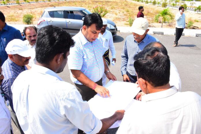నేటి సాక్షి ప్రతినిధి, వేములవాడ, ( కోక్కుల వంశీ ) : ఎల్.ఆర్.ఎస్.2020 దరఖాస్తుదారులు సమగ్ర సమాచారం ఇవ్వాలని ఆయా శాఖల అధికారులను కలెక్టర్ సందీప్ కుమార్ ఝా ఆదేశించారు. వేములవాడ రూరల్ మండలం అగ్రహారం పరిధిలోని అజెన డెవలపర్స్ కు సంబంధించి శ్రీనివాస్ తన వెంచర్ లో మొత్తం 11 ఎకరాల 25 గంటల భూమి ఉండగా, దానిలో 117 ప్లాట్స్ చేసినట్లు, ఎకరం 06 గుంటలు పార్క్ కోసం వదిలినట్లు తదితర వివరాలతో ఎల్ఆర్ఎస్ కోసం దరఖాస్తు చేసుకున్నారు. ఈ సందర్భంగా ఆ వెంచర్ ను కలెక్టర్, ఎల్ ఆర్ ఎస్ డిస్ట్రిక్ట్ చైర్మన్ సందీప్ కుమార్ ఝా, కమిటీ సభ్యులు వేములవాడ ఆర్డీవో రాజేశ్వర్, పీఆర్, ఆర్ అండ్ బీ ఈఈలు, నీటి పారుదల శాఖ ఈఈ, వేములవాడ మున్సిపల్ కమిషనర్ అన్వేష్, ఏడీ ఎస్ఎల్ఆర్ వెంకట్ రెడ్డి, డీపీఓ, డీటీసీపీఓ అన్సార్ ఉన్నారు. ఆ వెంచర్ ను కలెక్టర్ క్షేత్ర స్థాయిలో పరిశీలించారు. ఆయా శాఖల ఆద్వర్యంలో సమగ్ర సర్వే చేసి, పూర్తి వివరాలతో నివేదిక సమర్పించాలని ఆదేశించారు. కార్యక్రమంలో డీఎల్పీఓ నరేష్ తదితరులు పాల్గొన్నారు.