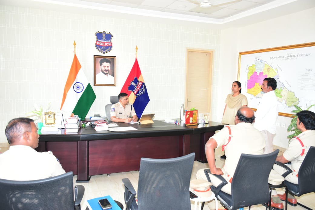 నేటి సాక్షి ప్రతినిధి గద్వాల్ ( రమేష్ ) : జోగులాంబ గద్వాల జిల్లా ప్రజావాణి కార్యక్రమంలో భాగంగా సోమవారం జిల్లా లోని వివిధ ప్రాంతాల నుండి వివిధ సమస్యలపై వచ్చిన ఫిర్యాదులను జిల్లా ఎస్పీ కార్యాలయంలో ఎస్పీ టి. శ్రీనివాస రావు బాధితుల నుండి 10 ఫిర్యాదులను స్వీకరించి వాటిని చట్టప్రకారం పరిశీలించవలసిందిగా ఆయా పోలీస్ స్టేషన్ లో ఎస్సై లకు సూచించారు. భూ తగాదాలకు సంబంధించి ఎలాంటి సమస్యలు ఉన్న కోర్టు ద్వారానే పరిష్కరించుకోవాలని, ఏలాంటి ఆవేశాలకు లోను కారాదని, చట్టాన్ని ఉల్లంఘించరాదని, అలాగే పోలీస్ స్టేషన్లకు, ప్రధాన కార్యాలయాలకు వెళ్లేవారు మధ్యవర్తులను తీసుకువెళ్లరాదని, బాధితులు మాత్రమే ధైర్యంగా వెళ్లి ఫిర్యాదు చేయాలని ఫిర్యాదుదారులకు ఎస్పీ తెలిపారు. పోలీసులు బాధితులు తీసుకొవచ్చే ఎలాంటి ఫిర్యాదులు పెండింగ్లో ఉంచరాదని ఒకవేళ పెండింగ్ ఉంటే అందుకు సంబంధించి సమాచారాన్ని ఫిర్యాదుదారులకు తెలియజేయాలని వీలైనంతవరకు ఫిర్యాదులను వెంటనే చట్ట ప్రకారం పరిష్కరించాలని ఫోన్లో మాట్లాడి సంబంధిత అధికారులకు సూచించారు. శాంతి భద్రతల పరిరక్షణలో భాగంగా ప్రజా సమస్యల పరిష్కారానికి పోలీస్ శాఖ నిరంతరం పని చేస్తుందని, పోలీసులు ప్రజల మన్ననలు పొందే విధంగా విధులు నిర్వర్తించి వారికి సరైన న్యాయం అందించి భరోసా, భద్రత కల్పించాలని సూచించారు. ప్రస్తుతం అధునాతన టెక్నాలజీ పెరుగుతున్నందున సైబర్ నేరాలు కూడా పెరుగుతున్నాయి కావున ప్రజలు సైబర్ నేరాల పట్ల అప్రమత్తంగా ఉండాలని అత్యవసర సమయంలో డయల్ 100 లేదా 1930 కి కాల్ చేసి సమాచారం ఇవ్వాలని ఎస్పీ తెలిపారు. ఈ ప్రజావాణి కార్యక్రమంలో గద్వాల్, ఆలంపూర్ మరియు శాంతి నగర్ సిఐ లు టి. శ్రీను, రవి బాబు, టాటా బాబు పాల్గొన్నారు.