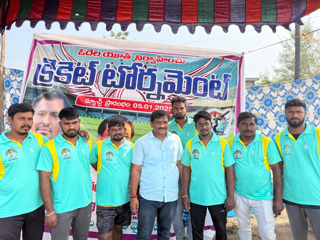 ఓదెల మండల కేంద్రంలో ఫ్రెండ్స్ యూత్ ఆధ్వర్యంలో నిర్వహిస్తున్న క్రికెట్ టోర్నమెంట్ లో ఓదెల గ్రామం నుండి నాలుగు జట్లు పాల్గొంటున్నాయి. ఈ టోర్నమెంట్లో పాల్గొంటున్నా జట్లకు శ్రీ మల్లికార్జున స్వామి ఆలయ మాజీ డైరెక్టర్ డా. కనికిరెడ్డి సతీష్ శుభాకాంక్షలు తెలియజేస్తూ యువత చెడు అలవాట్లకు దూరంగా ఉండి, ఆరోగ్యం, యోగ క్రీడలు, కాంపిటీటివ్ ఎగ్జామ్స్ పై దృష్టి పెట్టాలని, క్రీడా స్పూర్తితో ఆటలు ఆడాలని సూచించారు. అనంతరం ఓదెల గ్రామం నుండి పాల్గొనే అన్ని జట్లకు టీ షర్ట్ లను స్పాన్సర్ చేశారు. ఫ్రెండ్స్ యూత్ టోర్నమెంట్ నిర్వాహకులు చరణ్, ఇమ్రాన్, అజీజ్ టోర్నమెంటుకు అన్ని రకాల ఏర్పాట్లు నిర్వహించినట్లు తెలిపారు. ఈ టోర్నమెంటుకు టీ షర్ట్ లు స్పాన్సర్ చేసిన డా. సతీష్ కి ఓదెల గ్రామ యూత్ ప్రత్యేక అభినందలు తెలియజేశారు.