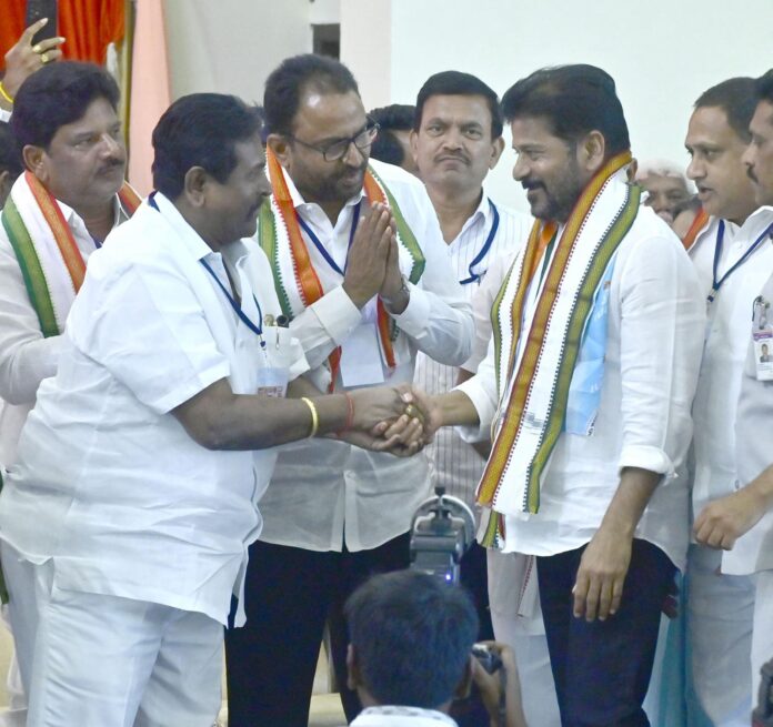 నేటిసాక్షి బ్యూరో, నిజామాబాద్ టి.ఎన్. రమేష్ : నిజామాబాద్ జిల్లా కాంగ్రెస్ పార్టీ పట్టభద్రుల ఎమ్మెల్సీ ఎన్నికల ప్రచారంలో భాగంగా, నిజామాబద్ భూమారెడ్డి గార్డెన్స్ లో గ్రాడ్యుయేట్ ఓటర్ల సమావేశాంలో, పాల్గొన్న తెలంగాణ రాష్ట్ర ముఖ్యమంత్రి గౌరవనీయులు శ్రీ ముఖ్యమంత్రి రేవంత్ రెడ్డి గారిని సన్మానించిన కామారెడ్డి జిల్లా కాంగ్రెస్ పార్టీ అధ్యక్షులు కైలాస్ శ్రీనివాస్ రావ్.