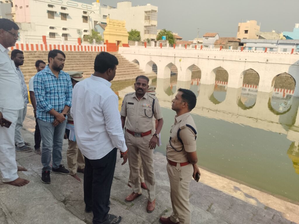 నేటి సాక్షి – ధర్మపురి ప్రతినిధి ( గుండ ప్రశాంత్ గౌడ్ ) : ధర్మపురి లో గల ప్రసిద్ధ పుణ్యక్షేత్రం శ్రీ లక్ష్మీనరసింహస్వామి బ్రహ్మోత్సవాల సందర్భంగా ఎలాంటి అవాంఛనీయ సంఘటనలు జరుగకుండా పటిష్టమైన భద్రత ఏర్పాట్లు చేయాలని ఎస్పీ అధికారులను ఆదేశించారు. ఈనెల 10వ తేదీ నుండి 22వ తేదీ వరకు జరుగు బ్రహ్మోత్సవాల సందర్భంగా ఆలయానికి పెద్ద ఎత్తున భక్తులు వచ్చే అవకాశం ఉందని, ఏలాంటి నేరాలకు తావులేకుండా, అవాంఛనీయ సంఘటనలు జరగకుండా ఏర్పాట్లు చేయాలని సూచించారు.ఆలయ పరిసరాల్లో కోనేరు ,క్యూలైన్లలో, వాహనాల రాకపోకలు మొదలైన ప్రదేశాల్లో ఏర్పాటు చేయవలసిన భద్రత ఏర్పాట్ల గురించి అధికారులకు పలు సూచనలు చేశారు. అదేవిధంగా ఆలయ పరిసర ప్రాంతాల్లో సీసీ కెమెరాలు ఏర్పాటు చేయాలని సూచించారు.భక్తుల సౌకర్యార్థం కంట్రోల్ రూమ్ ను ఏర్పాటు చేయాలని సూచించారు ఎస్పీ వెంట డిఎస్పి రఘు చందర్, సి.ఐ రామ్ నరసింహారెడ్డి, ఎస్.ఐలు ఉదయ్ కుమార్, ఉమసాగర్ ఉన్నారు.