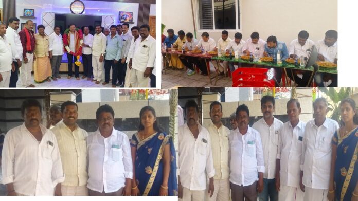 నేటి సాక్షి, అన్నమయ్య జిల్లా ప్రతినిధి భక్త కుమార్ : అన్నమయ్య జిల్లా రాయచోటి నియోజకవర్గం టిడిపి బీసీ సాధికార సమితి పాల ఏకరి రాష్ట్ర కన్వీనర్ గురిగింజకుంట శివప్రసాద్ నాయుడు గుట్ట బాబు వీరబల్లి మండలం మట్లి గ్రామం బత్తినవాండ్లపల్లెలో మానస హోటల్ యజమాని బత్తిన శ్రీనివాసులురెడ్డి బోనాల సందర్బంగా ఇచ్చిన విందుకు శుక్రవారం మధ్యాహ్నం కార్యక్రమంలో పాల్గొని వారిచ్చిన విందు ను స్వీకరించడం జరిగింది. తెలుగుదేశం పార్టీ రాష్ట్ర కార్యనిర్వహక కార్యదర్శి, టీటీడీ మాజీ పాలకమండలి సభ్యులు, రాయచోటి నియోజకవర్గ తెలుగుదేశం పార్టీ సీనియర్ నాయకులు సుగవాసి ప్రసాద్ బాబుని ఘజమాలతో ఘనంగా శాలువా కప్పి సన్మానం చేశారు. ఈ కార్యక్రమంలో మట్లి సర్పంచ్ నాగార్జున చారి, భూషణయ్య నాయుడు, లక్ష్మయ్య, సుబ్బరామప్ప నాయుడు, శ్రీనివాసులు నాయుడు, పల్లపు రెడ్డయ్య, నాగార్జున నాయుడు, మన్నేరు రామాంజులు, బడిశెట్టి రవి, వీర నాగిరెడ్డి, మనోహర, పసుపులేటి సుధాకర్, కూటాలయ్య, స్టాంపులు రమణ, రాజంపేట జనసేన నాయకులు రామ శ్రీనివాస్, జాతీయ బీసీ సంక్షేమ సంఘం రాష్ట్ర ప్రధాన కార్యదర్శి మల్లూరు సునీతమ్మ, ముద్దుశెట్టి రామయ్య, వేడుక చలపతి, గురిగింజ కుంట శివకుమార్ నాయుడు, గురిగింజకుంట ముని కుమార్ నాయుడు వాసుదేవ,పల్లపు వెంకటరమణ,శివాజీ, శివయ్య,అనిల్,గంగయ్య, మనోహర తదితరులు పాల్గొన్నారు.