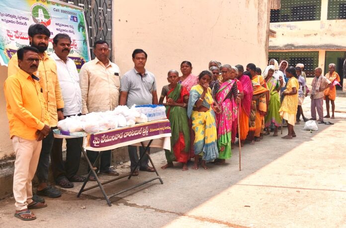 నేటి సాక్షి ప్రతినిధి, వేములవాడ ( కోక్కుల వంశీ ) : మై వేములవాడ చారిటబుల్ ట్రస్ట్ ఆధ్వర్యంలో దాతల సహకారంతో 1429 రోజులుగా నిర్వహిస్తున్న అన్నదాన కార్యక్రమంలో భాగంగా శనివారం రోజున లక్ష్మీ గణపతి కాంప్లెక్స్ రాజన్న భీమేశ్వర ఆలయం వద్ద పేదలకు అన్నదాన కార్యక్రమంతో పాటు వాటర్ బాటిల్స్ పంపిణీ చేసినట్లు ట్రస్టు నిర్వాహకులు మధు మహేష్ తెలిపారు. శనివారం అన్నదాతలుగా గోవిందారం గ్రామానికి చెందిన రాగేటి మహేష్ స్రవంతి దంపతులు పేదలకు అన్నదానం చేయాలన్న సంకల్పంతో అమూల్య కిషన్ రావు జ్యోత్స్న, వీరి కుమారుడు రోహిత్ రావు కూతురు రోషిని రావు,బీ జువ్వాడి స్నేహాలత వెంకటేశ్వరరావు దంపతులు, ప్రతాప స్వప్న సంపత్ దంపతులు, నగుబోతు రవీందర్ జ్యోతి దంపతులు, గణాచారి మఠం శైలజ సాంబశివు దంపతులు, దేవరాజు ఉమ బాల చందర్ రాజు దంపతులు, రామడుగు శ్రీలత, కొడుకులు కోడళ్లు ప్రజ్ఞ శరత్ చంద్ర దంపతులు, శిరీష సాయిచంద్ర దంపతులు, శర్వాణి రవిచంద్ర దంపతులు, హైదరాబాద్ వాస్తవ్యులు చిన్నారులు శ్రీహర్ష, సాయికృష్ణ ఉన్నారని తెలిపారు. పేదలకు అన్నదాన కార్యక్రమానికి సహకారం అందించాలనుకునే దాతలు ట్రస్టు సభ్యులను సంప్రదించాలని ట్రస్టు నిర్వాహకులు మధు మహేష్ కోరారు. ఈ కార్యక్రమంలో ట్రస్ట్ సభ్యులు మధు మహేష్, వొడ్యాల వేణు, పొలాస రాజేందర్, పసుల శ్రీనివాస్, సగ్గు రాహుల్ తదితరులు పాల్గొన్నారు.